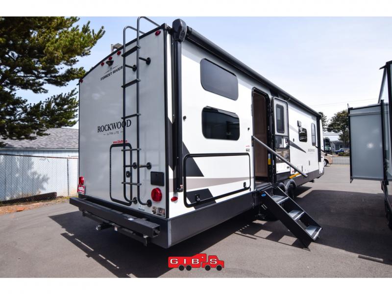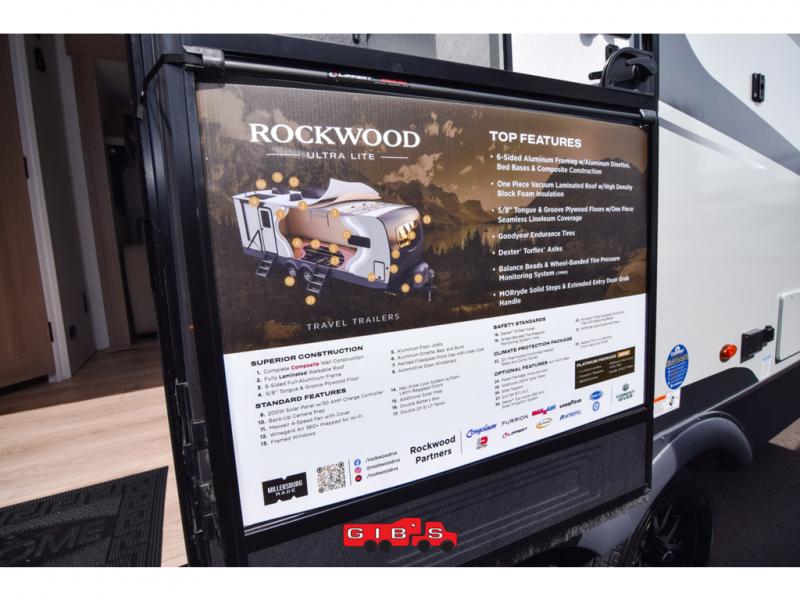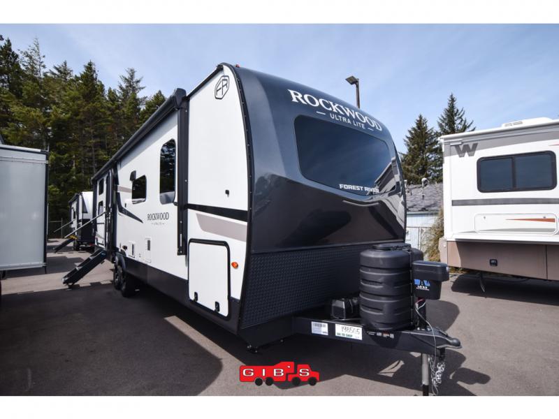Each Rockwood Ultra Lite travel trailer by Forest River includes superior construction with a high gloss front cap, laminated white fiberglass sidewalls, and tinted frameless windows for a sleek look. The torsion axle, Rubber-Ryde suspension will make towing smooth and hassle-free, along with the nitrogen filled, Goodyear Endurance tires and the tire pressure monitor system. Interior comforts include designer kitchen backsplash, solid wood cabinet doors with hidden hinges, and night roller shades to name a few. Choose a Rockwood Ultra Lite travel trailer today!