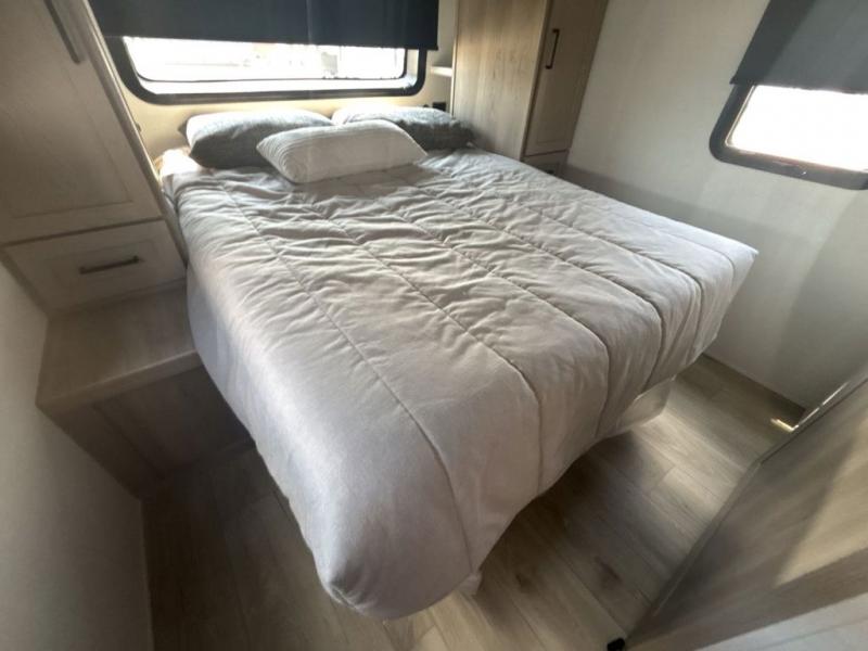 Looking for a trailer that sleeps eight, allows you to cook indoors or outdoors, and provides added interior space? This trailer provides for those wants and needs, and even more! The outside kitchen gives you more choices when feeding the masses along with the outside griddle, and the interior kitchen includes an L-shaped area for the cook to have their own space with full amenities including a walk-in pantry to bring along everything they need. The full bathroom will keep everyone refreshed, and the theater seating and U-shaped dinette offer seating inside to enjoy the Smart TV and fireplace. There is plenty of storage found throughout the interior, and along the exterior you will find several places to stow your outdoor items including in the pass thru storage with an optional steel sliding tray. There is even a front door option if you prefer to have dual entry doors!