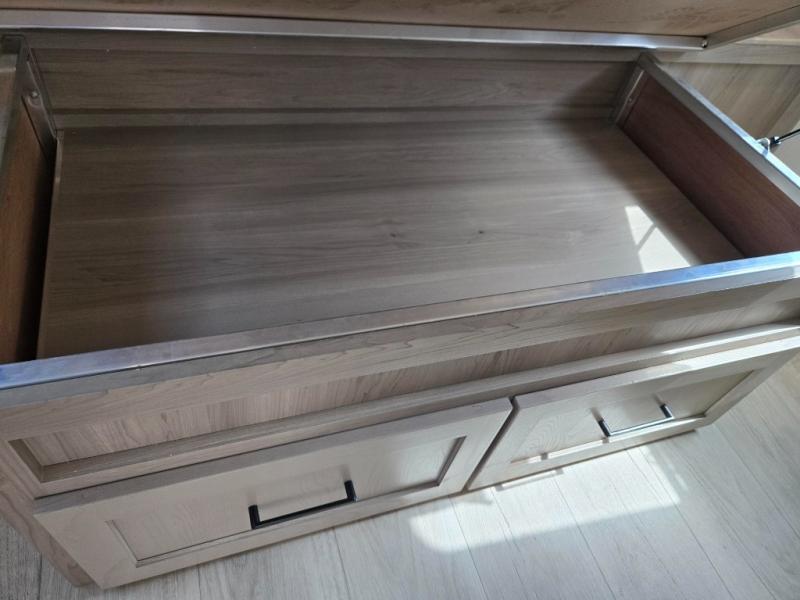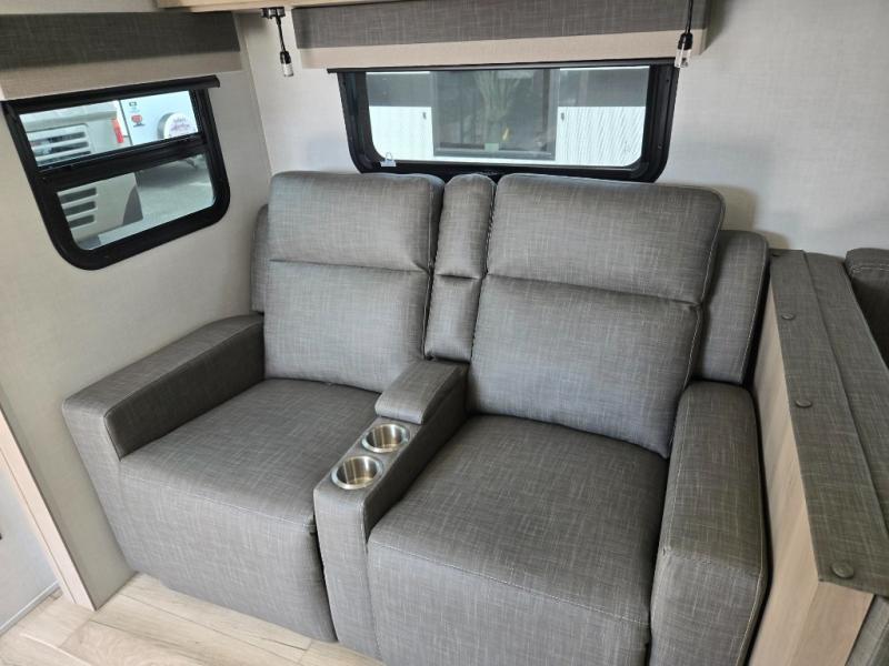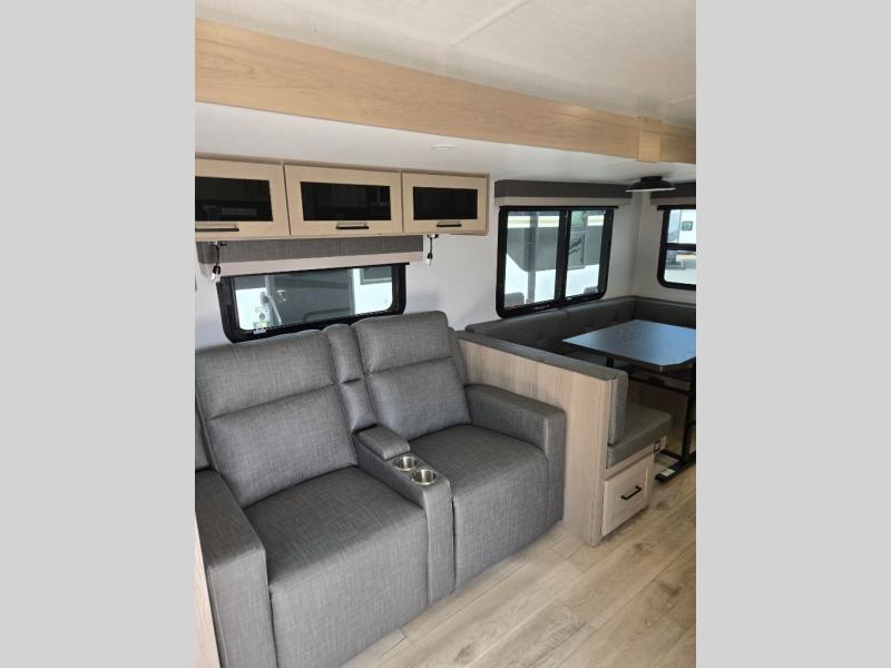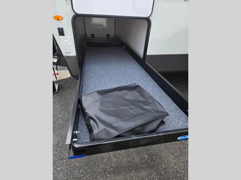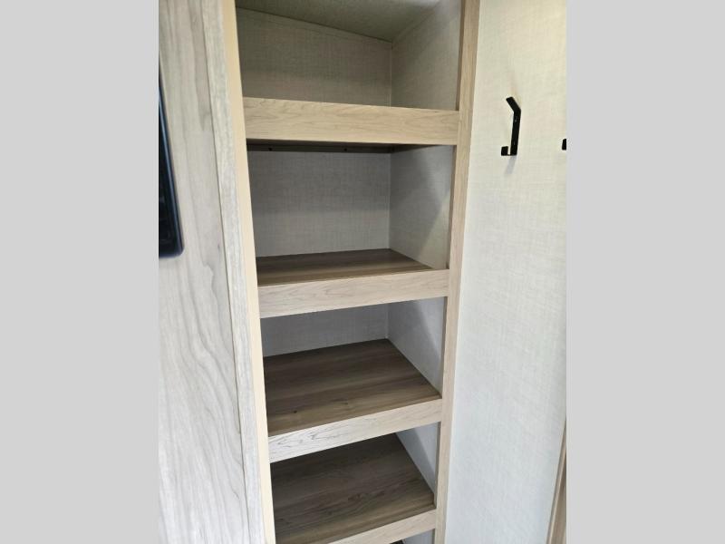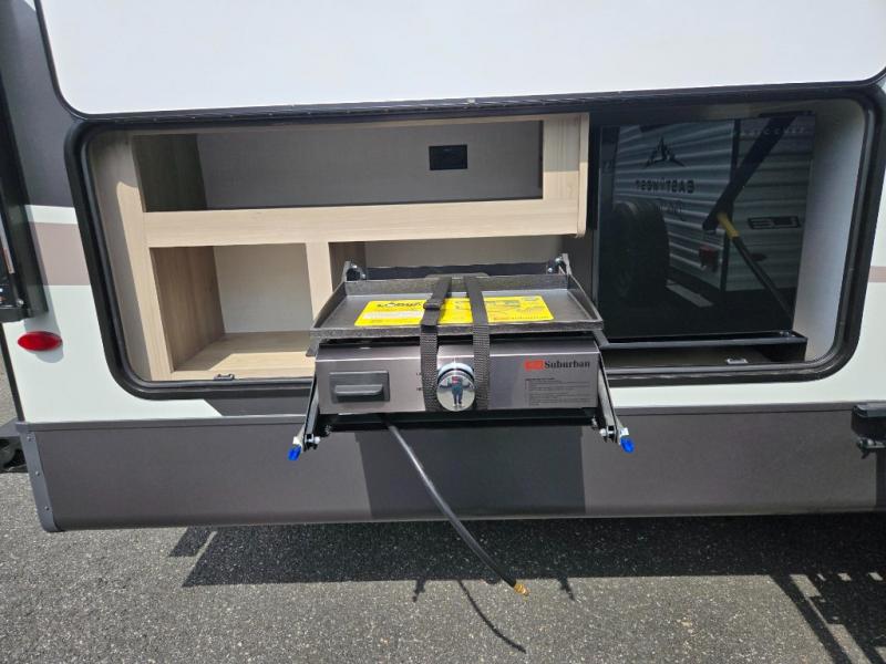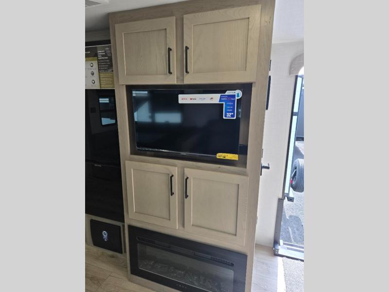 Looking for a trailer that sleeps eight, allows you to cook indoors or outdoors, and provides added interior space? This trailer provides for those wants and needs, and even more! The outside kitchen gives you more choices when feeding the masses along with the outside griddle, and the interior kitchen includes an L-shaped area for the cook to have their own space with full amenities including a walk-in pantry to bring along everything they need. The full bathroom will keep everyone refreshed, and the theater seating and U-shaped dinette offer seating inside to enjoy the Smart TV and fireplace. There is plenty of storage found throughout the interior, and along the exterior you will find several places to stow your outdoor items including in the pass thru storage with an optional steel sliding tray. There is even a front door option if you prefer to have dual entry doors!