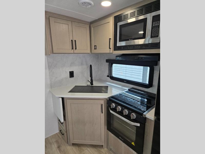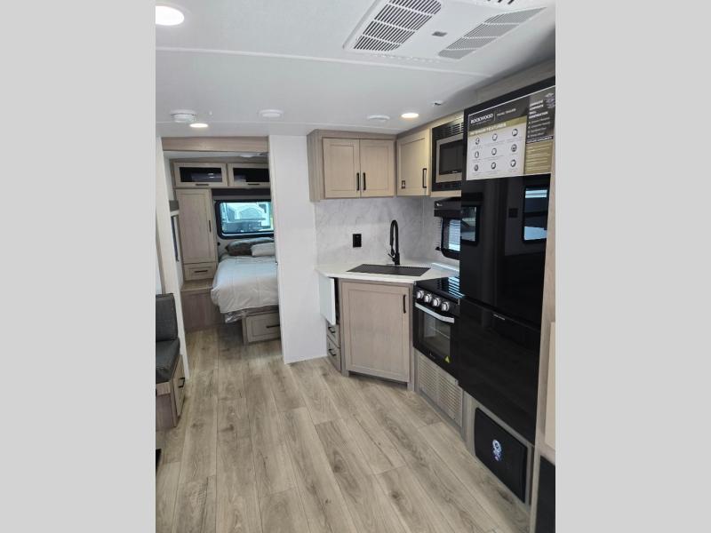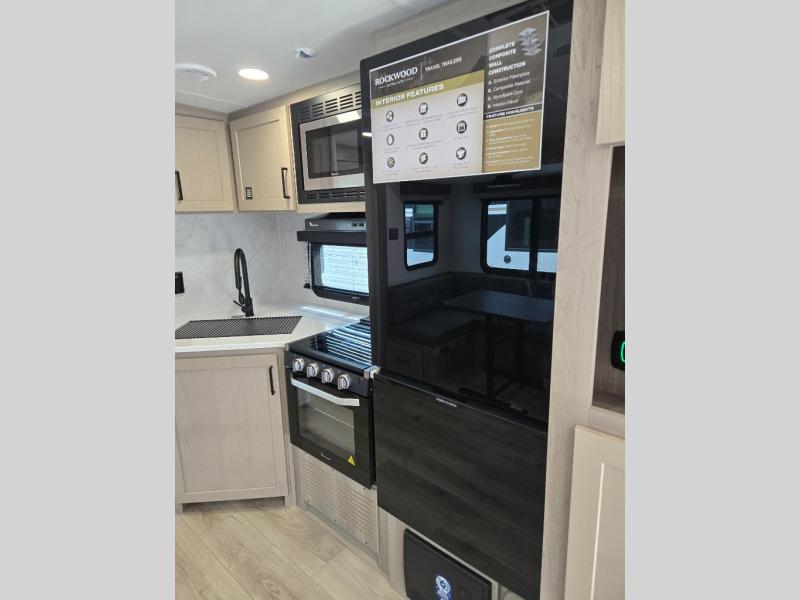 Each Rockwood Ultra Lite travel trailer by Forest River includes superior construction with a high gloss front cap, laminated white fiberglass sidewalls, and tinted frameless windows for a sleek look. The torsion axle, Rubber-Ryde suspension will make towing smooth and hassle-free, along with the nitrogen filled, Goodyear Endurance tires and the tire pressure monitor system. Interior comforts include designer kitchen backsplash, solid wood cabinet doors with hidden hinges, and night roller shades to name a few. Choose a Rockwood Ultra Lite travel trailer today!