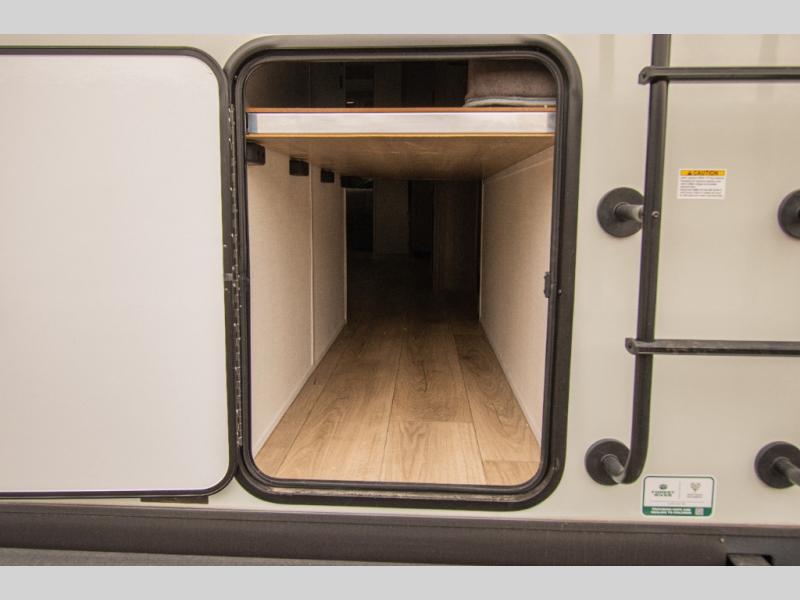 Looking for a trailer that sleeps eight, allows you to cook indoors or outdoors, and provides added interior space? This trailer provides for those wants and needs, and even more! The outside kitchen gives you more choices when feeding the masses along with the outside griddle, and the interior kitchen includes an L-shaped area for the cook to have their own space with full amenities including a walk-in pantry to bring along everything they need. The full bathroom will keep everyone refreshed, and the theater seating and U-shaped dinette offer seating inside to enjoy the Smart TV and fireplace. There is plenty of storage found throughout the interior, and along the exterior you will find several places to stow your outdoor items including in the pass thru storage with an optional steel sliding tray. There is even a front door option if you prefer to have dual entry doors!