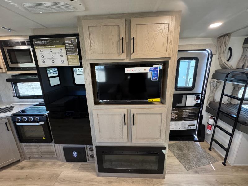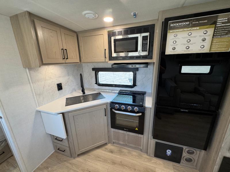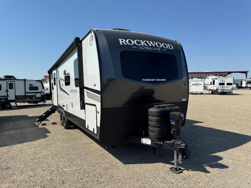 Each Rockwood Ultra Lite travel trailer by Forest River includes superior construction with a high gloss fiberglass cap, aluminum cage construction, and a power awning with LED lighting for a cozy and functional outdoor space. The torsion axle, power tongue jack will make towing smooth and hassle-free, along with the nitrogen filled, Goodyear Endurance tires and the tire pressure monitor system. Interior comforts include kitchen sink with high rise faucet, hidden hinge cabinet doors, and roller shades to name a few. Choose a Rockwood Ultra Lite travel trailer today!