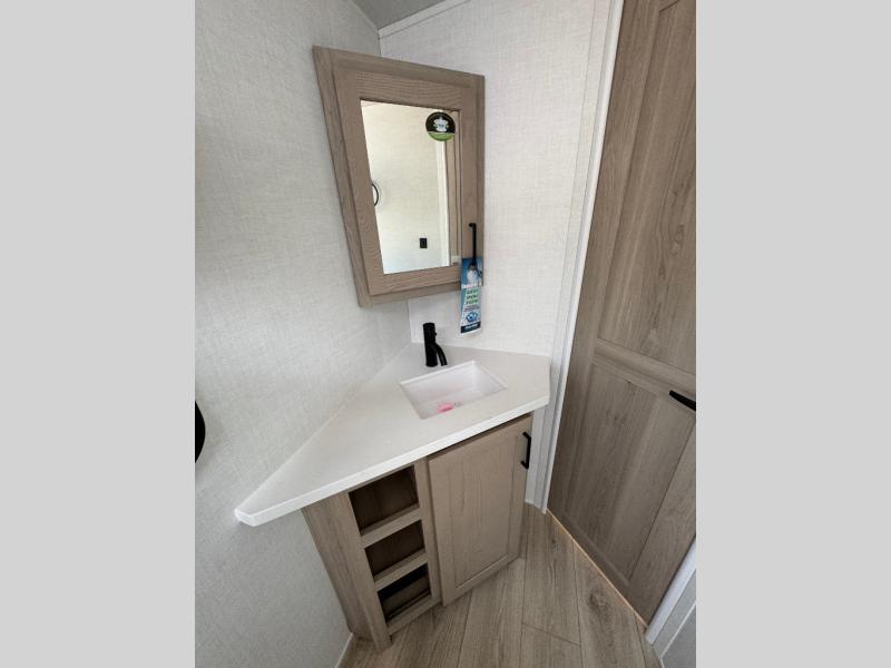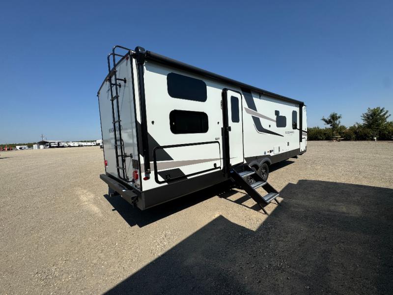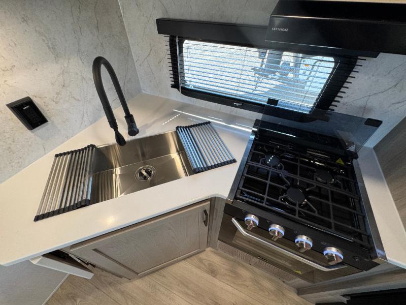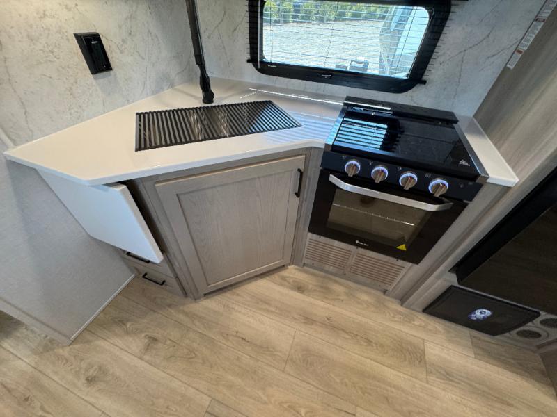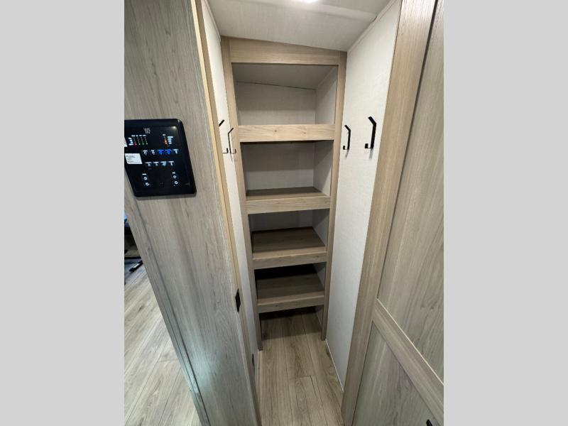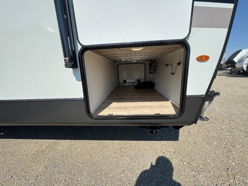 Looking for a trailer that sleeps eight, allows you to cook indoors or outdoors, and provides added interior space? This trailer provides for those wants and needs, and even more! The outside kitchen gives you more choices when feeding the masses along with the outside griddle, and the interior kitchen includes an L-shaped area for the cook to have their own space with full amenities including a walk-in pantry to bring along everything they need. The full bathroom will keep everyone refreshed, and the theater seating and U-shaped dinette offer seating inside to enjoy the Smart TV and fireplace. There is plenty of storage found throughout the interior, and along the exterior you will find several places to stow your outdoor items including in the pass thru storage with an optional steel sliding tray. There is even a front door option if you prefer to have dual entry doors!