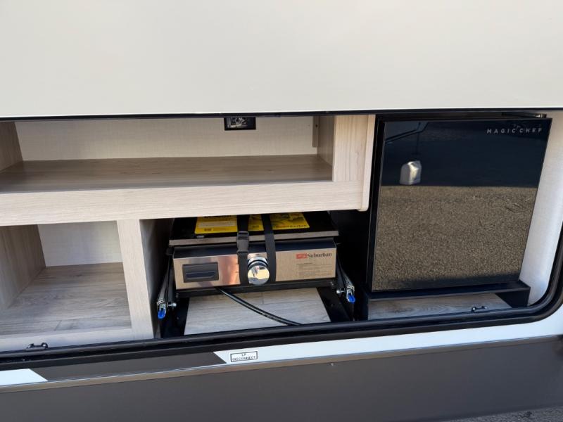 Looking for a trailer that sleeps eight, allows you to cook indoors or outdoors, and provides added interior space? This trailer provides for those wants and needs, and even more! The outside kitchen gives you more choices when feeding the masses along with the outside griddle, and the interior kitchen includes an L-shaped area for the cook to have their own space with full amenities including a walk-in pantry to bring along everything they need. The full bathroom will keep everyone refreshed, and the theater seating and U-shaped dinette offer seating inside to enjoy the Smart TV and fireplace. There is plenty of storage found throughout the interior, and along the exterior you will find several places to stow your outdoor items including in the pass thru storage with an optional steel sliding tray. There is even a front door option if you prefer to have dual entry doors!