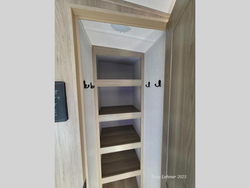 Looking for a trailer that sleeps eight, allows you to cook indoors or outdoors, and provides added interior space? This trailer provides for those wants and needs, and even more! The outside kitchen gives you more choices when feeding the masses along with the outside griddle, and the interior kitchen includes an L-shaped area for the cook to have their own space with full amenities including a walk-in pantry to bring along everything they need. The full bathroom will keep everyone refreshed, and the theater seating and U-shaped dinette offer seating inside to enjoy the Smart TV and fireplace. There is plenty of storage found throughout the interior, and along the exterior you will find several places to stow your outdoor items including in the pass thru storage with an optional steel sliding tray. There is even a front door option if you prefer to have dual entry doors!