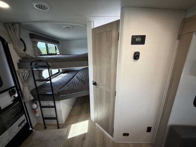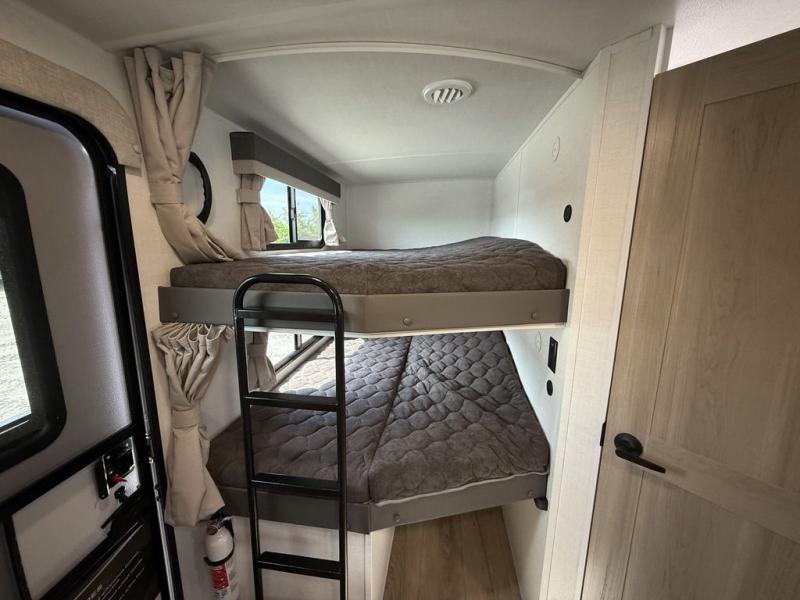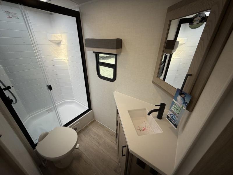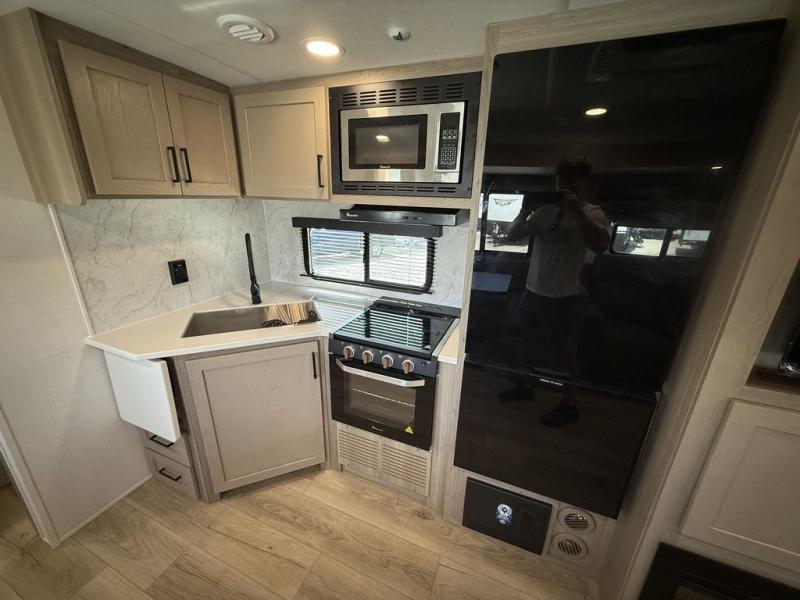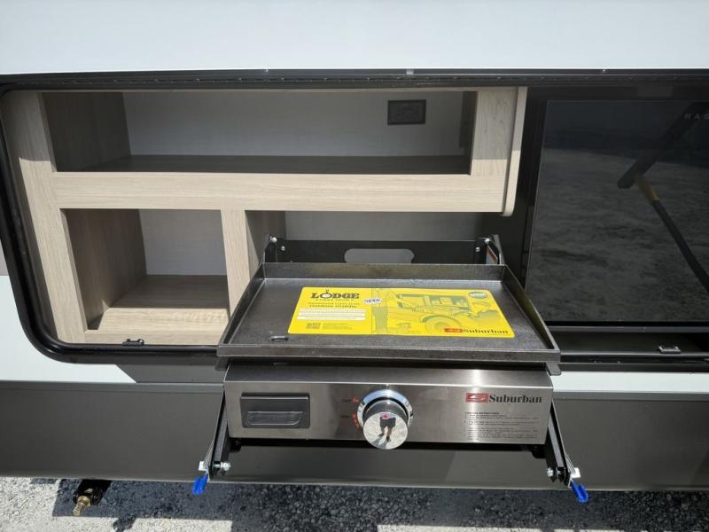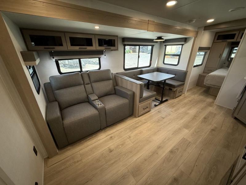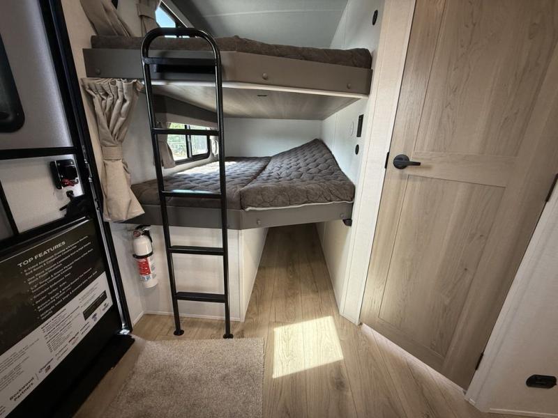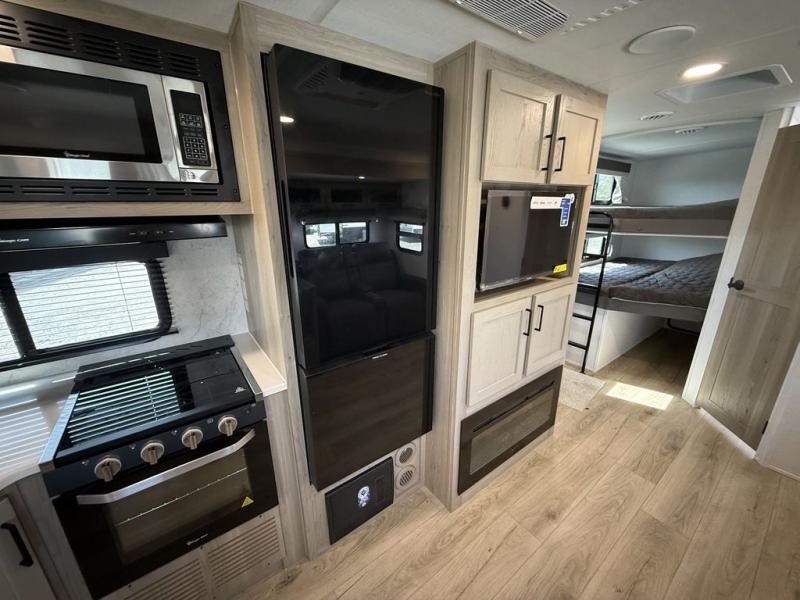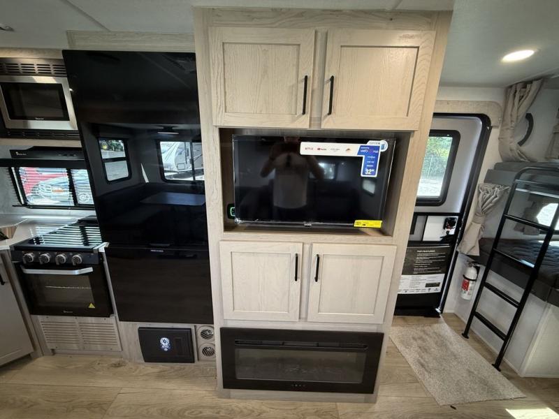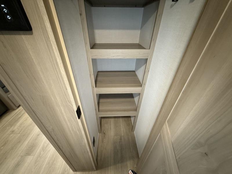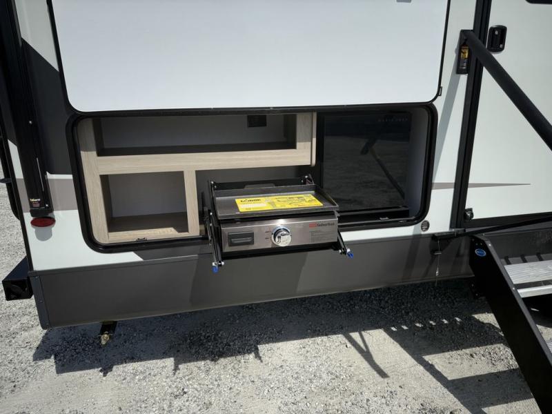 Looking for a trailer that sleeps eight, allows you to cook indoors or outdoors, and provides added interior space? This trailer provides for those wants and needs, and even more! The outside kitchen gives you more choices when feeding the masses along with the outside griddle, and the interior kitchen includes an L-shaped area for the cook to have their own space with full amenities including a walk-in pantry to bring along everything they need. The full bathroom will keep everyone refreshed, and the theater seating and U-shaped dinette offer seating inside to enjoy the Smart TV and fireplace. There is plenty of storage found throughout the interior, and along the exterior you will find several places to stow your outdoor items including in the pass thru storage with an optional steel sliding tray. There is even a front door option if you prefer to have dual entry doors!