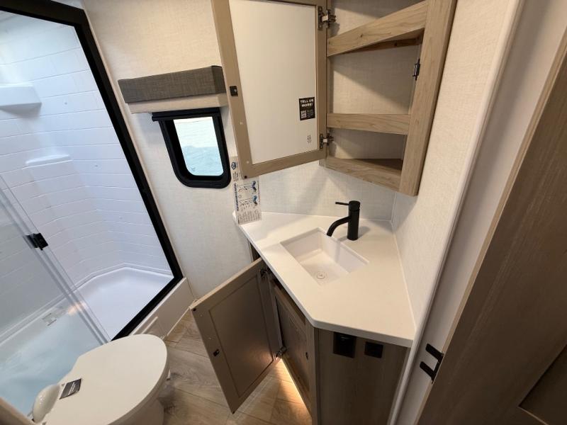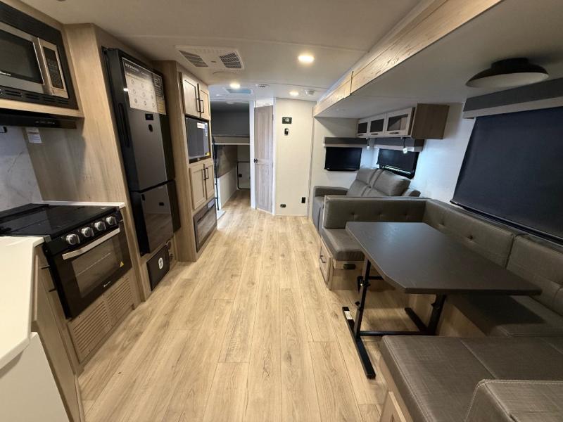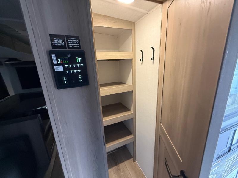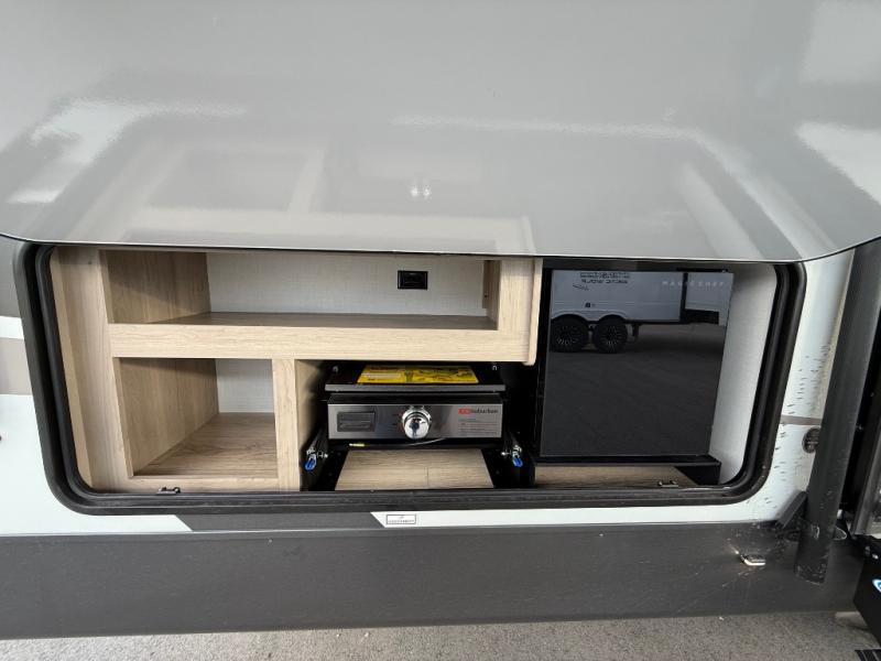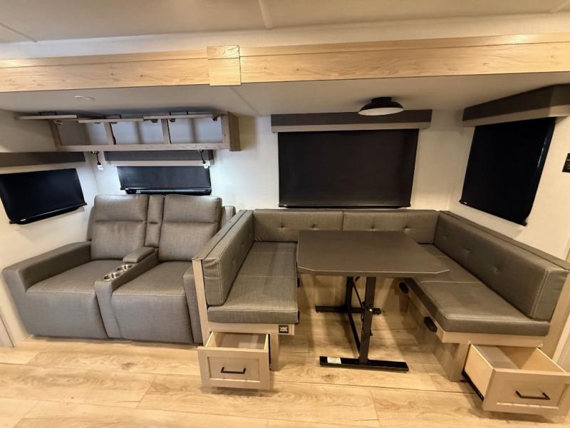 Looking for a trailer that sleeps eight, allows you to cook indoors or outdoors, and provides added interior space? This trailer provides for those wants and needs, and even more! The outside kitchen gives you more choices when feeding the masses along with the outside griddle, and the interior kitchen includes an L-shaped area for the cook to have their own space with full amenities including a walk-in pantry to bring along everything they need. The full bathroom will keep everyone refreshed, and the theater seating and U-shaped dinette offer seating inside to enjoy the Smart TV and fireplace. There is plenty of storage found throughout the interior, and along the exterior you will find several places to stow your outdoor items including in the pass thru storage with an optional steel sliding tray. There is even a front door option if you prefer to have dual entry doors!