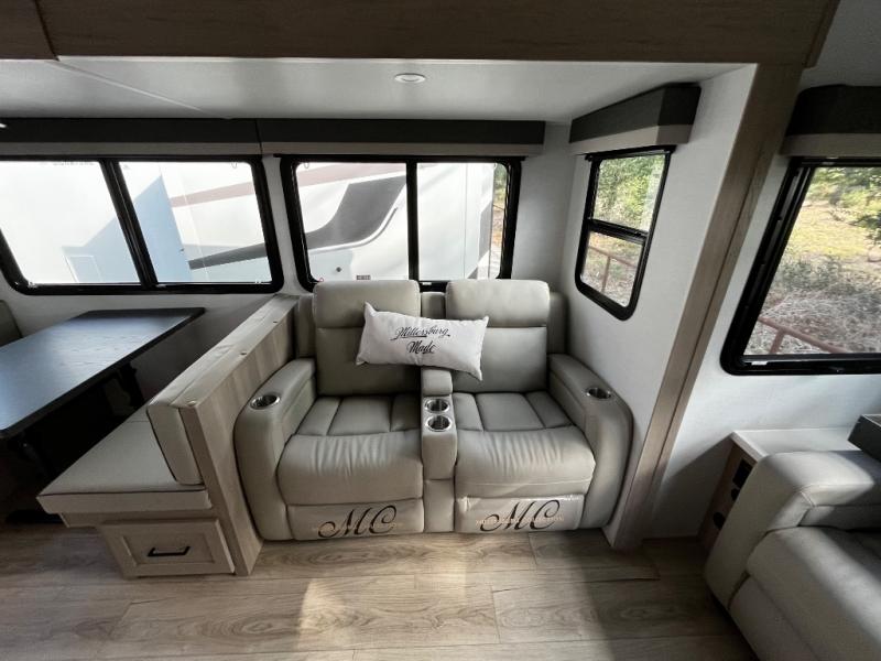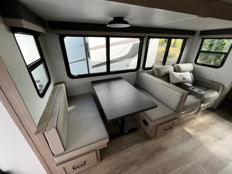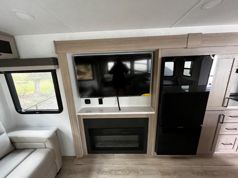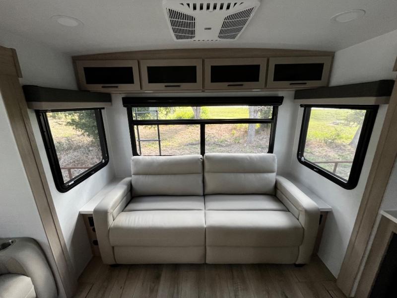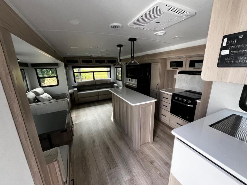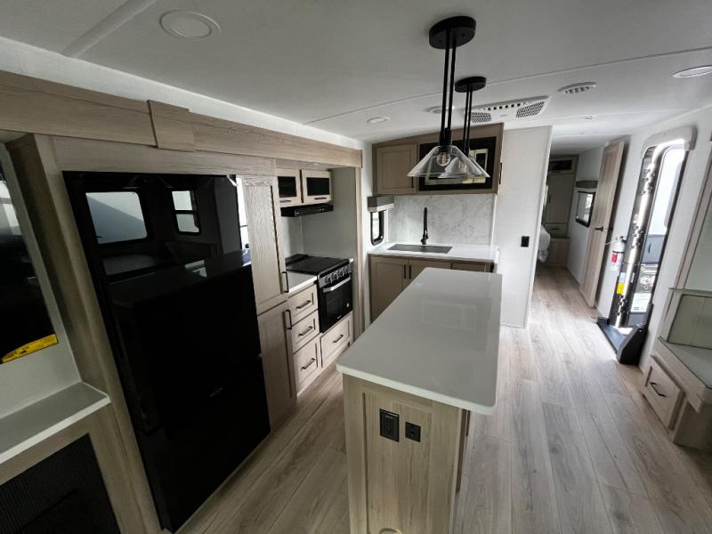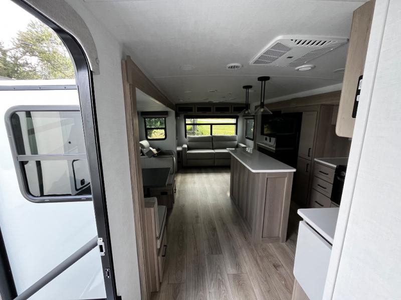 This Forest River Rockwood Ultra Lite 2906RL travel trailer is designed for comfort and space, featuring dual opposing slides in the main living area that open up the rear living room for everyone to gather. Whether you're relaxing on the hide-a-bed sofa, kicking back in the theater seats, or enjoying a meal at the booth dinette, there's room for the whole gang. The kitchen island adds extra counter space, perfect for laying out plates and creating a buffet-style spread. Up front, the private bedroom offers a queen bed and two wardrobes, giving you plenty of storage for clothes and essentials. Along with two awnings outside, you can enjoy morning sunrises or evening sunsets with friends and family.
