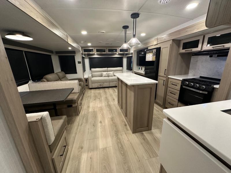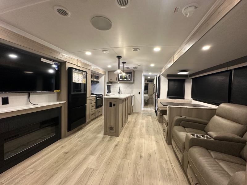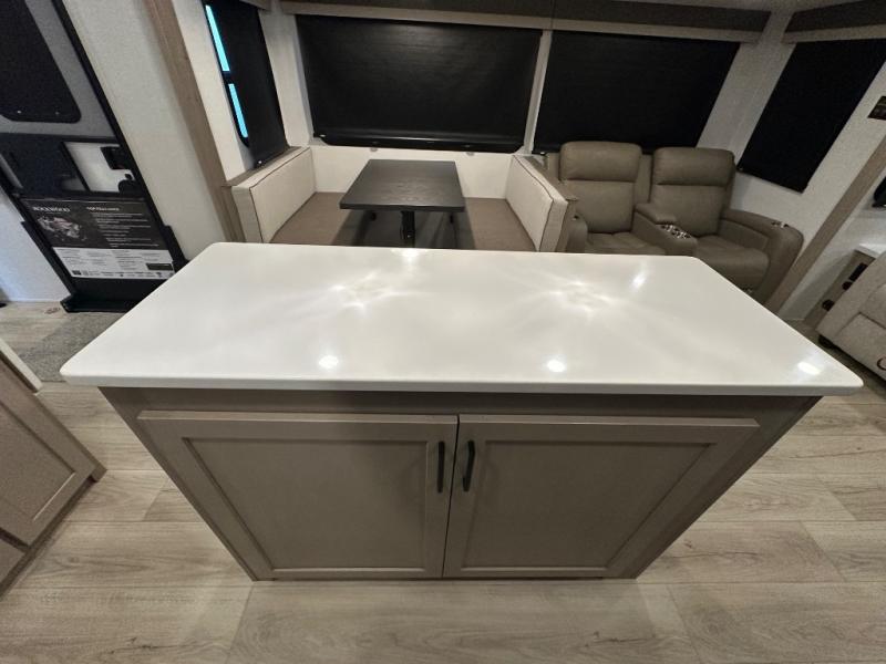 This Forest River Rockwood Ultra Lite 2906RL travel trailer is designed for comfort and space, featuring dual opposing slides in the main living area that open up the rear living room for everyone to gather. Whether you're relaxing on the hide-a-bed sofa, kicking back in the theater seats, or enjoying a meal at the booth dinette, there's room for the whole gang. The kitchen island adds extra counter space, perfect for laying out plates and creating a buffet-style spread. Up front, the private bedroom offers a queen bed and two wardrobes, giving you plenty of storage for clothes and essentials. Along with two awnings outside, you can enjoy morning sunrises or evening sunsets with friends and family.