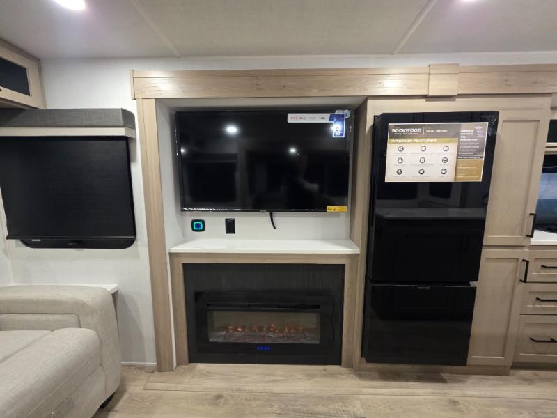 Each Rockwood Ultra Lite travel trailer by Forest River includes superior construction with a high gloss fiberglass cap, aluminum cage construction, and a power awning with LED lighting for a cozy and functional outdoor space. The torsion axle, power tongue jack will make towing smooth and hassle-free, along with the nitrogen filled, Goodyear Endurance tires and the tire pressure monitor system. Interior comforts include kitchen sink with high rise faucet, hidden hinge cabinet doors, and roller shades to name a few. Choose a Rockwood Ultra Lite travel trailer today!