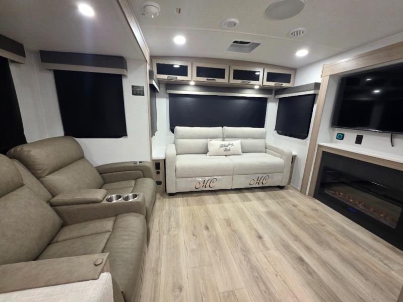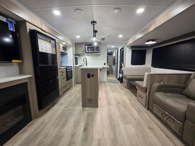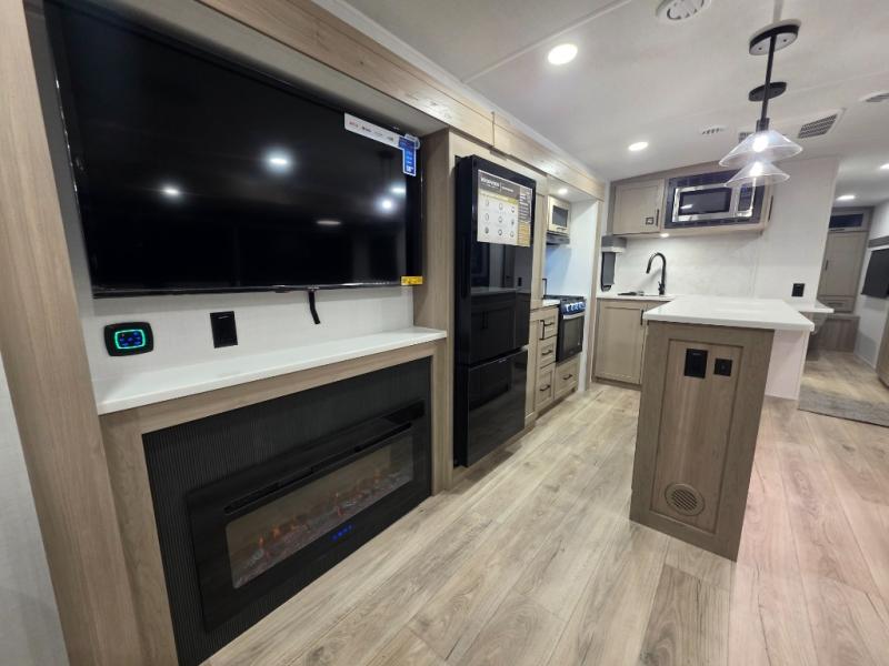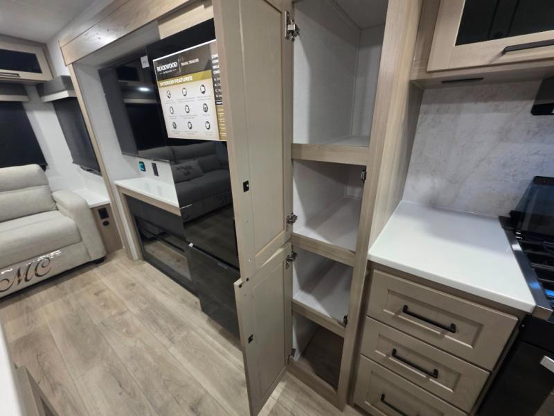 This Forest River Rockwood Ultra Lite 2906RL travel trailer is designed for comfort and space, featuring dual opposing slides in the main living area that open up the rear living room for everyone to gather. Whether you're relaxing on the hide-a-bed sofa, kicking back in the theater seats, or enjoying a meal at the booth dinette, there's room for the whole gang. The kitchen island adds extra counter space, perfect for laying out plates and creating a buffet-style spread. Up front, the private bedroom offers a queen bed and two wardrobes, giving you plenty of storage for clothes and essentials. Along with two awnings outside, you can enjoy morning sunrises or evening sunsets with friends and family.