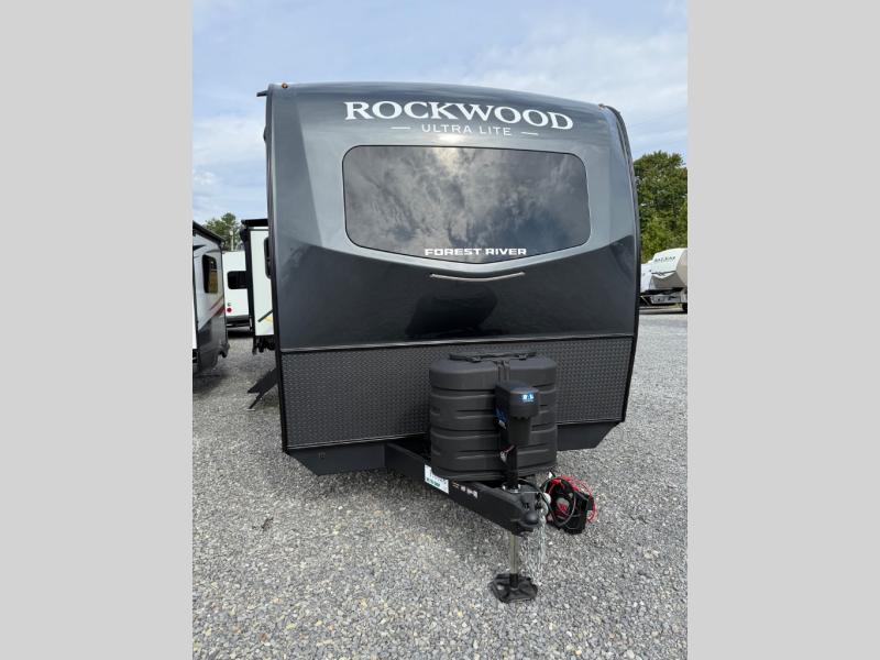 Each Rockwood Ultra Lite travel trailer by Forest River includes superior construction with a high gloss fiberglass cap, aluminum cage construction, and a power awning with LED lighting for a cozy and functional outdoor space. The torsion axle, power tongue jack will make towing smooth and hassle-free, along with the nitrogen filled, Goodyear Endurance tires and the tire pressure monitor system. Interior comforts include kitchen sink with high rise faucet, hidden hinge cabinet doors, and roller shades to name a few. Choose a Rockwood Ultra Lite travel trailer today!