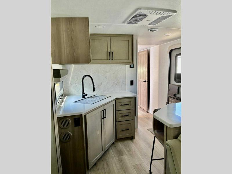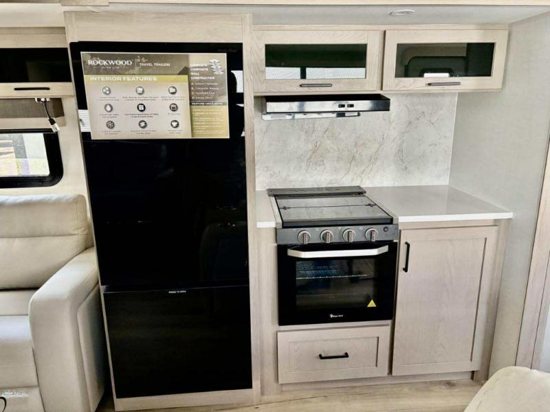 Each Rockwood Ultra Lite travel trailer by Forest River includes superior construction with a high gloss front cap, laminated white fiberglass sidewalls, and tinted frameless windows for a sleek look. The torsion axle, Rubber-Ryde suspension will make towing smooth and hassle-free, along with the nitrogen filled, Goodyear Endurance tires and the tire pressure monitor system. Interior comforts include designer kitchen backsplash, solid wood cabinet doors with hidden hinges, and night roller shades to name a few. Choose a Rockwood Ultra Lite travel trailer today!
