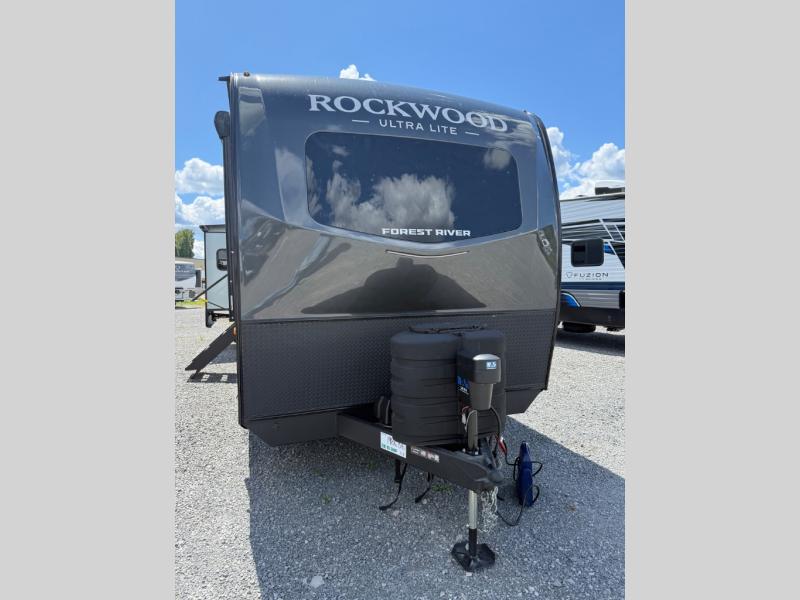 Each Rockwood Ultra Lite travel trailer by Forest River includes superior construction with a high gloss fiberglass cap, aluminum cage construction, and a power awning with LED lighting for a cozy and functional outdoor space. The torsion axle, power tongue jack will make towing smooth and hassle-free, along with the nitrogen filled, Goodyear Endurance tires and the tire pressure monitor system. Interior comforts include kitchen sink with high rise faucet, hidden hinge cabinet doors, and roller shades to name a few. Choose a Rockwood Ultra Lite travel trailer today!