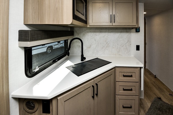 Each Rockwood Ultra Lite travel trailer by Forest River includes superior construction with a high gloss fiberglass cap, aluminum cage construction, and a power awning with LED lighting for a cozy and functional outdoor space. The torsion axle, power tongue jack will make towing smooth and hassle-free, along with the nitrogen filled, Goodyear Endurance tires and the tire pressure monitor system. Interior comforts include kitchen sink with high rise faucet, hidden hinge cabinet doors, and roller shades to name a few. Choose a Rockwood Ultra Lite travel trailer today!