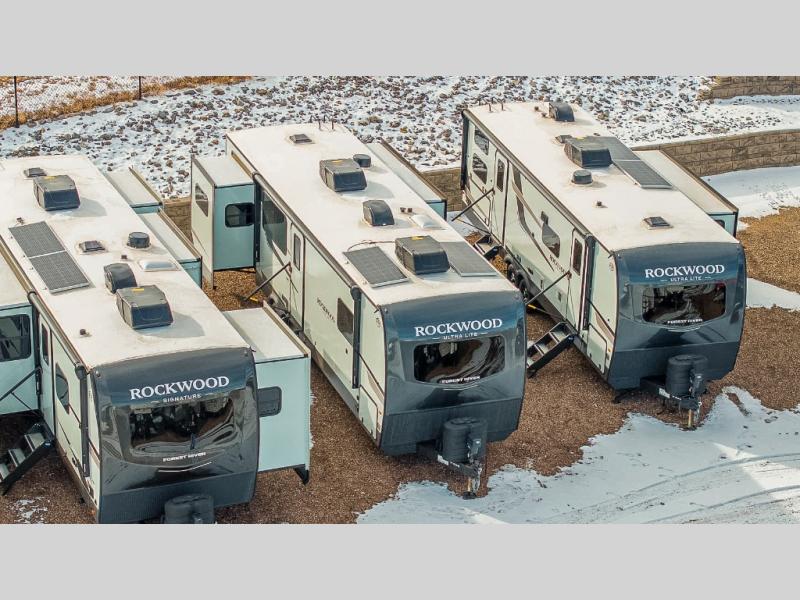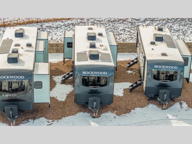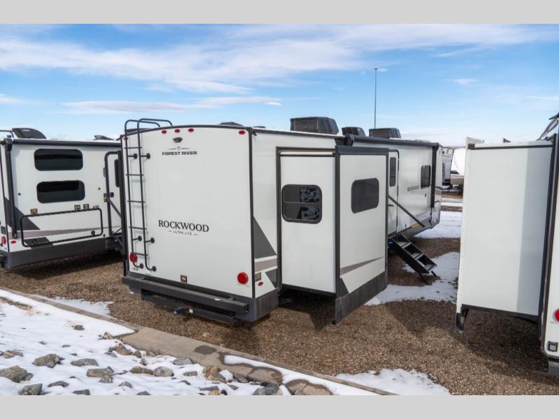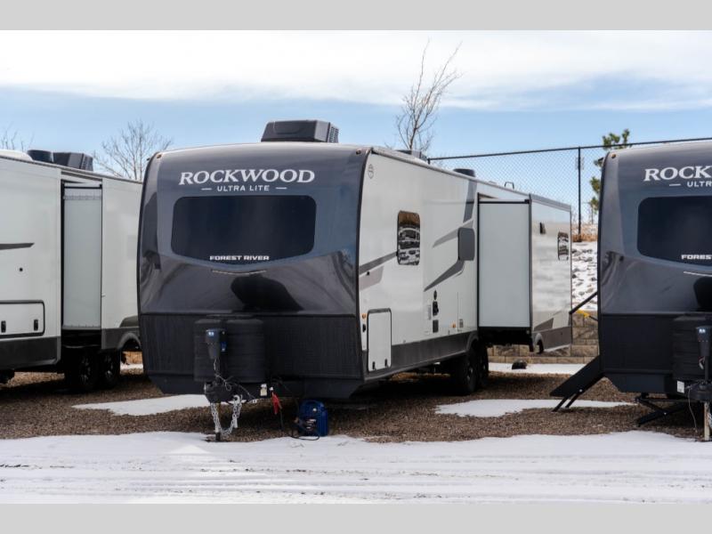 Each Rockwood Ultra Lite travel trailer by Forest River includes superior construction with a high gloss fiberglass cap, aluminum cage construction, and a power awning with LED lighting for a cozy and functional outdoor space. The torsion axle, power tongue jack will make towing smooth and hassle-free, along with the nitrogen filled, Goodyear Endurance tires and the tire pressure monitor system. Interior comforts include kitchen sink with high rise faucet, hidden hinge cabinet doors, and roller shades to name a few. Choose a Rockwood Ultra Lite travel trailer today!