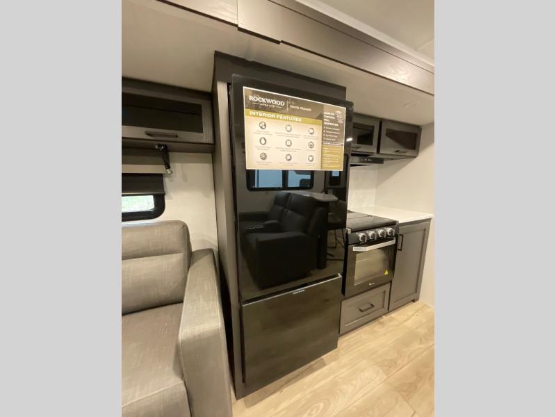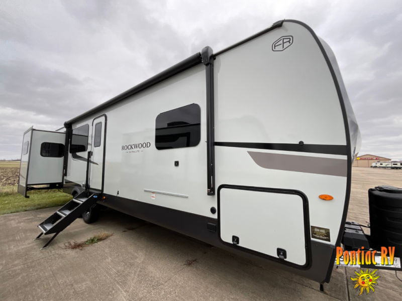 Each Rockwood Ultra Lite travel trailer by Forest River includes superior construction with a high gloss fiberglass cap, aluminum cage construction, and a power awning with LED lighting for a cozy and functional outdoor space. The torsion axle, power tongue jack will make towing smooth and hassle-free, along with the nitrogen filled, Goodyear Endurance tires and the tire pressure monitor system. Interior comforts include kitchen sink with high rise faucet, hidden hinge cabinet doors, and roller shades to name a few. Choose a Rockwood Ultra Lite travel trailer today!