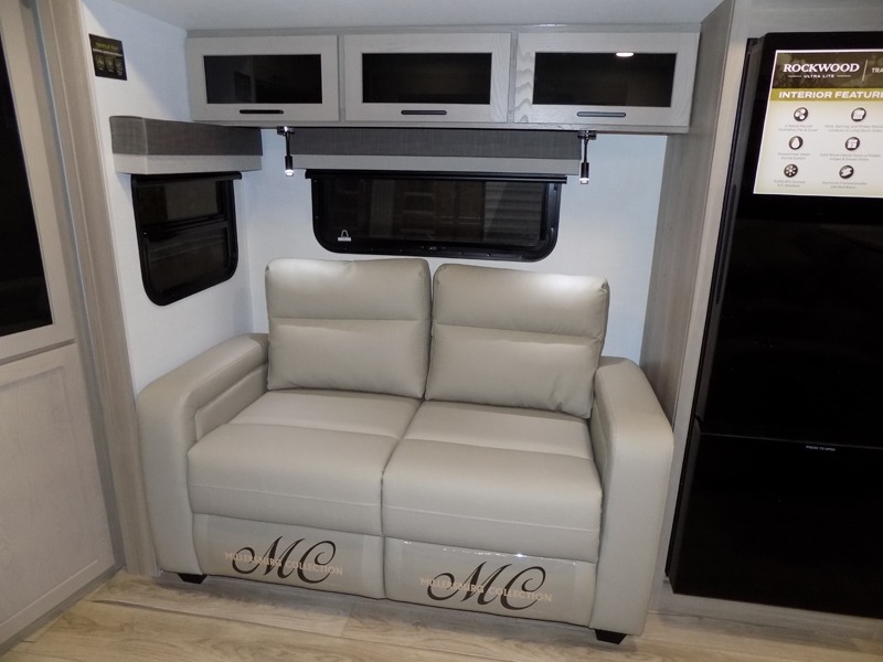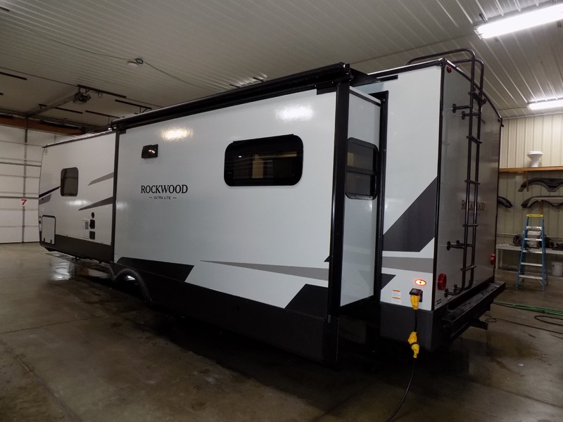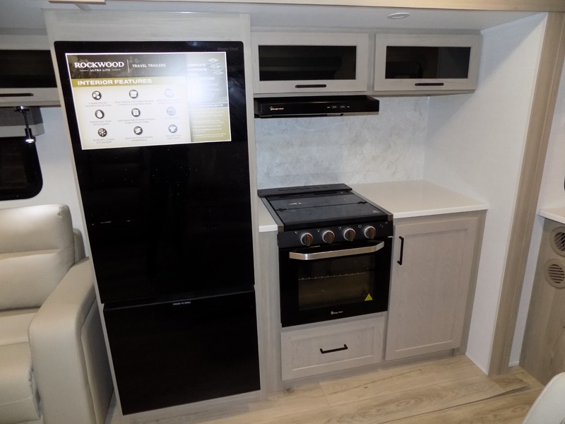 Each Rockwood Ultra Lite travel trailer by Forest River includes superior construction with a high gloss fiberglass cap, aluminum cage construction, and a power awning with LED lighting for a cozy and functional outdoor space. The torsion axle, power tongue jack will make towing smooth and hassle-free, along with the nitrogen filled, Goodyear Endurance tires and the tire pressure monitor system. Interior comforts include kitchen sink with high rise faucet, hidden hinge cabinet doors, and roller shades to name a few. Choose a Rockwood Ultra Lite travel trailer today!
