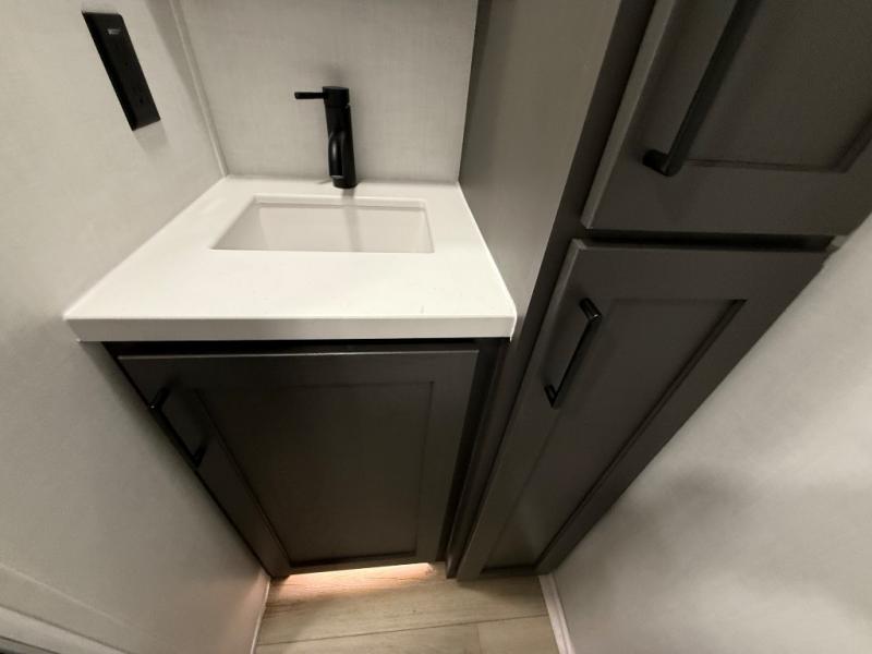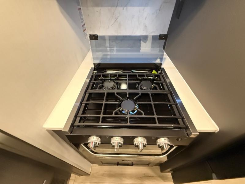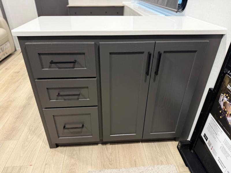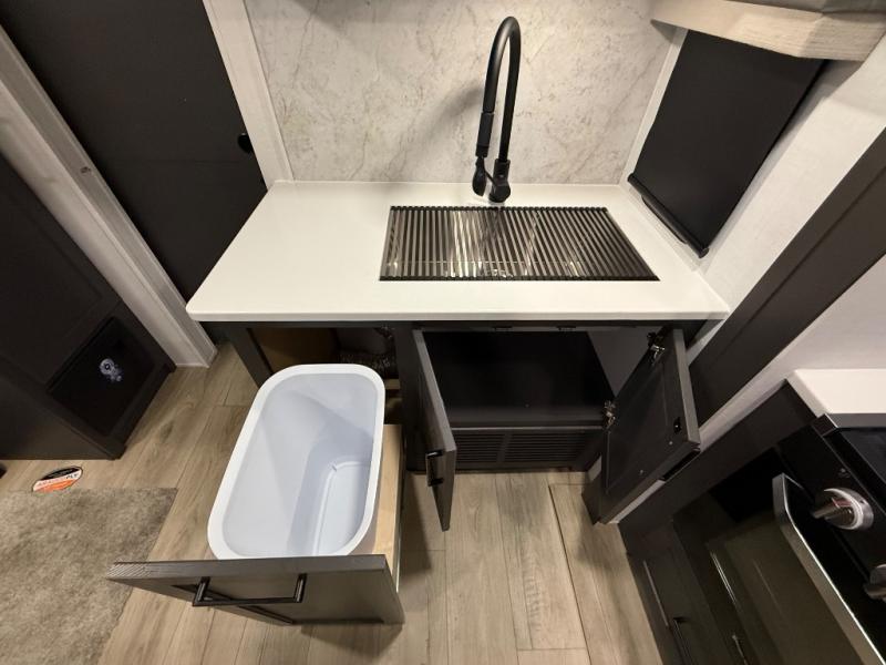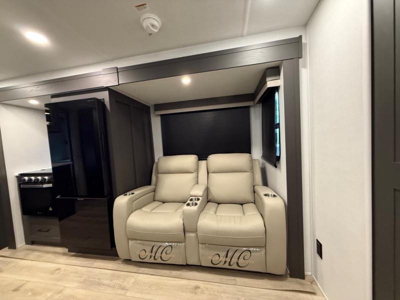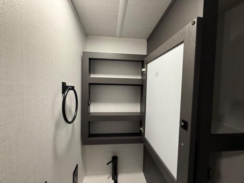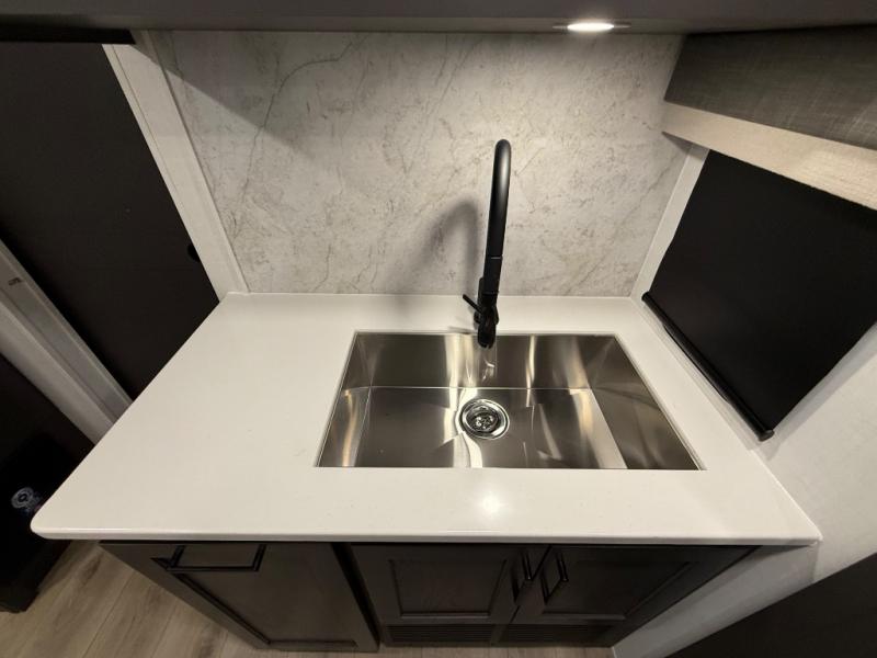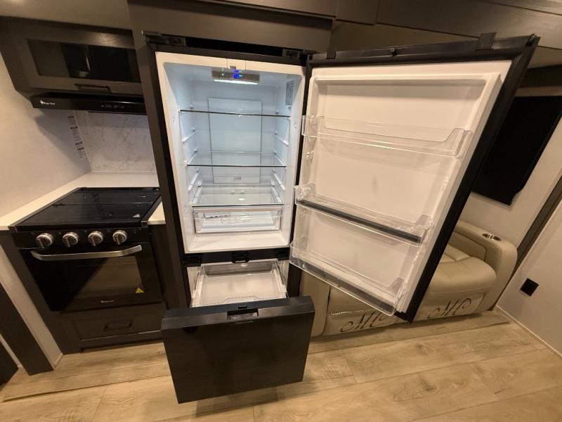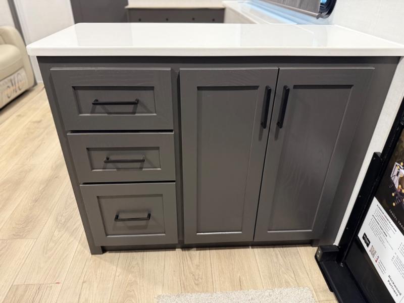 If you've been searching for a full-featured travel trailer, this is the one! Not only will you enjoy your own space up front in the master bedroom, but your guests can claim the rear bunkhouse suite all to themselves. There are two bunks with storage here, along with a desk, and a half bath for convenience. Your crew can meet in the middle living area on the theater seat or booth dinette. There is also a 39" TV here for movie nights! The chef can choose to cook indoors on the three burner range, or head outdoors to use the exterior griddle. A full walk-thru bath is sure to come in handy after a day at the lake, and did we mention this unit has dual entry doors?!
