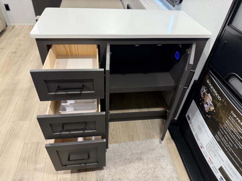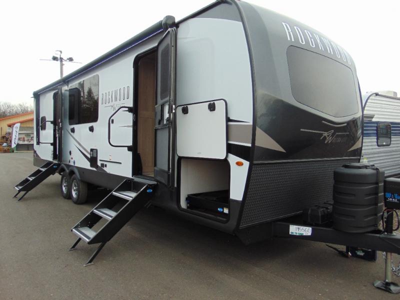 Each Rockwood Ultra Lite travel trailer by Forest River includes superior construction with a high gloss front cap, laminated white fiberglass sidewalls, and tinted frameless windows for a sleek look. The torsion axle, Rubber-Ryde suspension will make towing smooth and hassle-free, along with the nitrogen filled, Goodyear Endurance tires and the tire pressure monitor system. Interior comforts include designer kitchen backsplash, solid wood cabinet doors with hidden hinges, and night roller shades to name a few. Choose a Rockwood Ultra Lite travel trailer today!