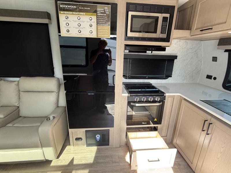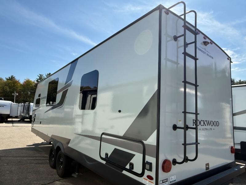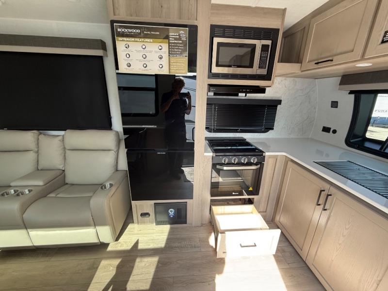 This model is designed for RVers who want a balance of luxury and practicality. Its residential kitchen, roomy living space, and private sleeping quarters make it feel like home on the road. The Rockwood Ultra Lite series is known for its durability, modern styling, and excellent resale value, making it a smart choice for families or couples who love to travel.
