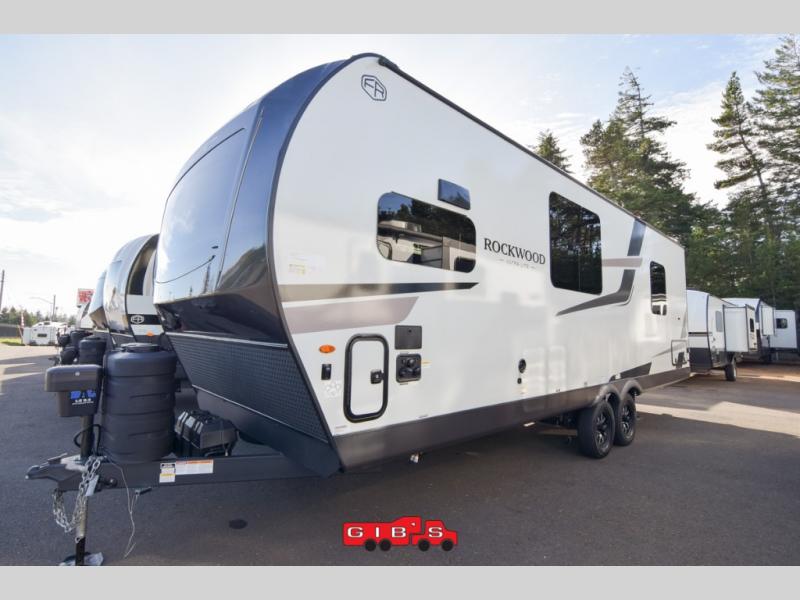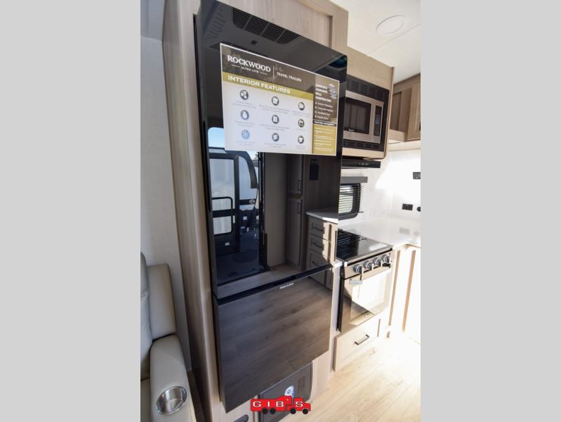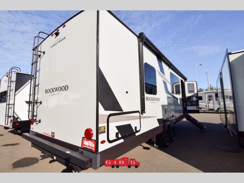 Each Rockwood Ultra Lite travel trailer by Forest River includes superior construction with a high gloss fiberglass cap, aluminum cage construction, and a power awning with LED lighting for a cozy and functional outdoor space. The torsion axle, power tongue jack will make towing smooth and hassle-free, along with the nitrogen filled, Goodyear Endurance tires and the tire pressure monitor system. Interior comforts include kitchen sink with high rise faucet, hidden hinge cabinet doors, and roller shades to name a few. Choose a Rockwood Ultra Lite travel trailer today!