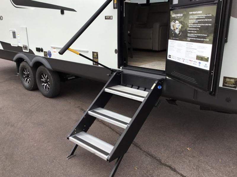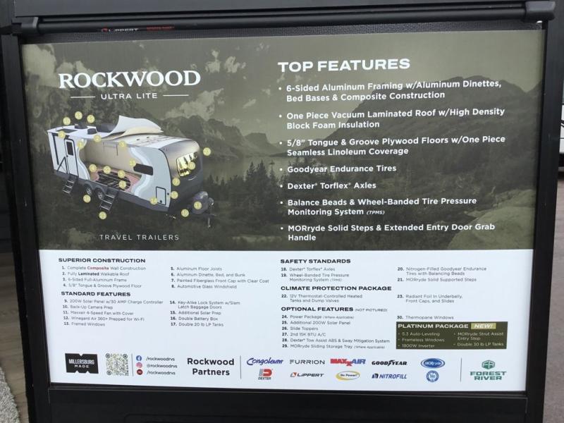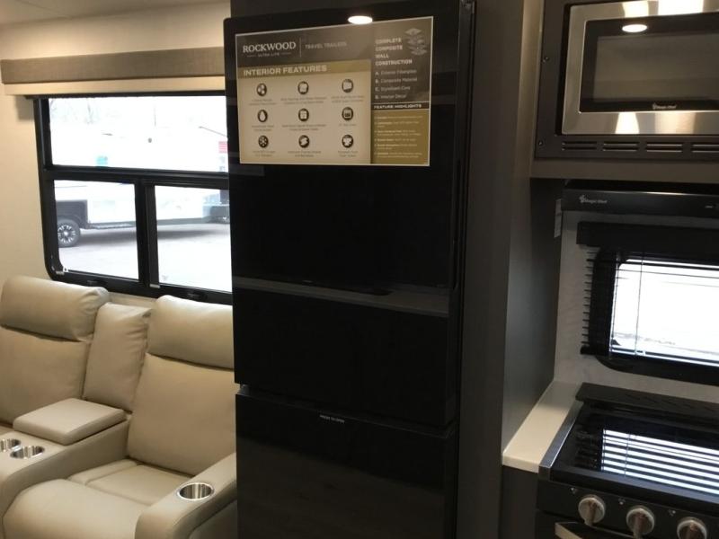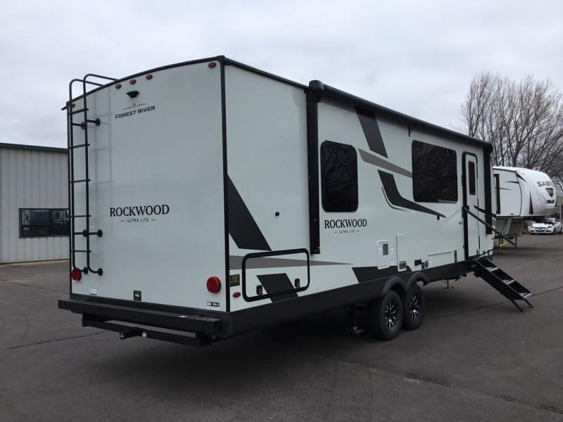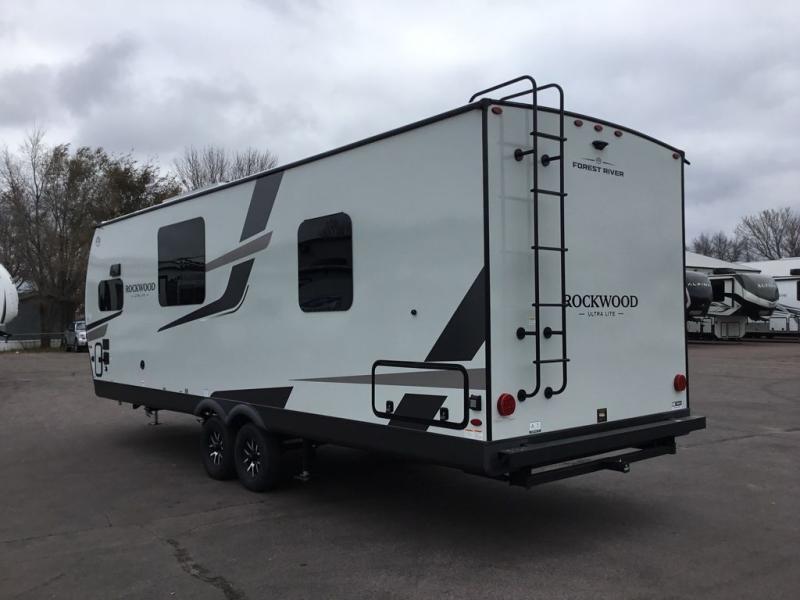 Each Rockwood Ultra Lite travel trailer by Forest River includes superior construction with a high gloss fiberglass cap, aluminum cage construction, and a power awning with LED lighting for a cozy and functional outdoor space. The torsion axle, power tongue jack will make towing smooth and hassle-free, along with the nitrogen filled, Goodyear Endurance tires and the tire pressure monitor system. Interior comforts include kitchen sink with high rise faucet, hidden hinge cabinet doors, and roller shades to name a few. Choose a Rockwood Ultra Lite travel trailer today!