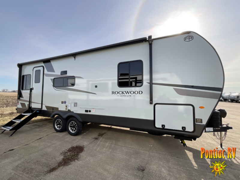 Each Rockwood Ultra Lite travel trailer by Forest River includes superior construction with a high gloss fiberglass cap, aluminum cage construction, and a power awning with LED lighting for a cozy and functional outdoor space. The torsion axle, power tongue jack will make towing smooth and hassle-free, along with the nitrogen filled, Goodyear Endurance tires and the tire pressure monitor system. Interior comforts include kitchen sink with high rise faucet, hidden hinge cabinet doors, and roller shades to name a few. Choose a Rockwood Ultra Lite travel trailer today!