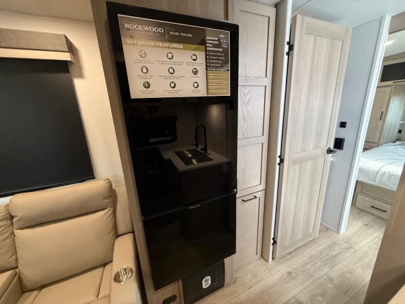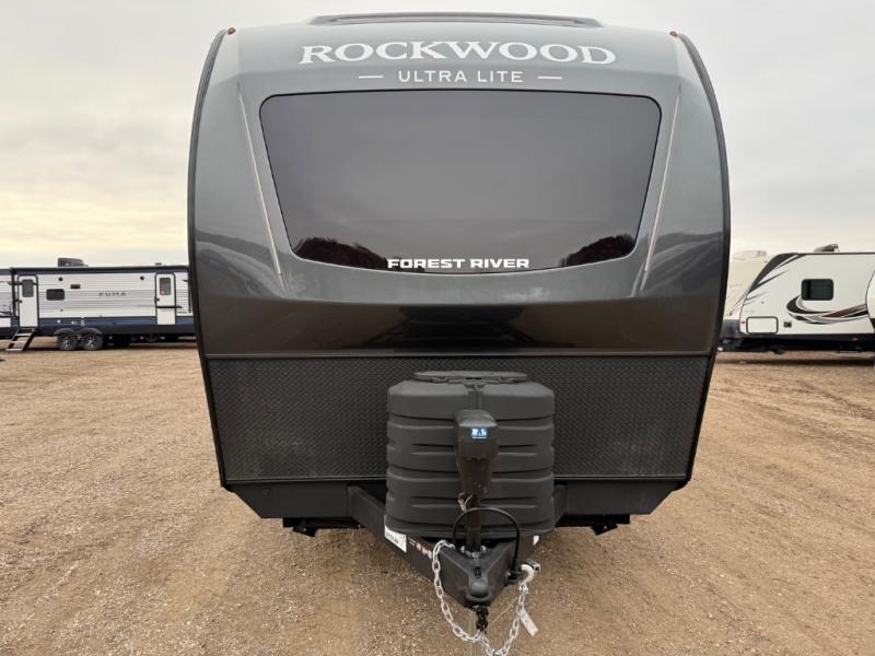 Each Rockwood Ultra Lite travel trailer by Forest River includes superior construction with a high gloss fiberglass cap, aluminum cage construction, and a power awning with LED lighting for a cozy and functional outdoor space. The torsion axle, power tongue jack will make towing smooth and hassle-free, along with the nitrogen filled, Goodyear Endurance tires and the tire pressure monitor system. Interior comforts include kitchen sink with high rise faucet, hidden hinge cabinet doors, and roller shades to name a few. Choose a Rockwood Ultra Lite travel trailer today!