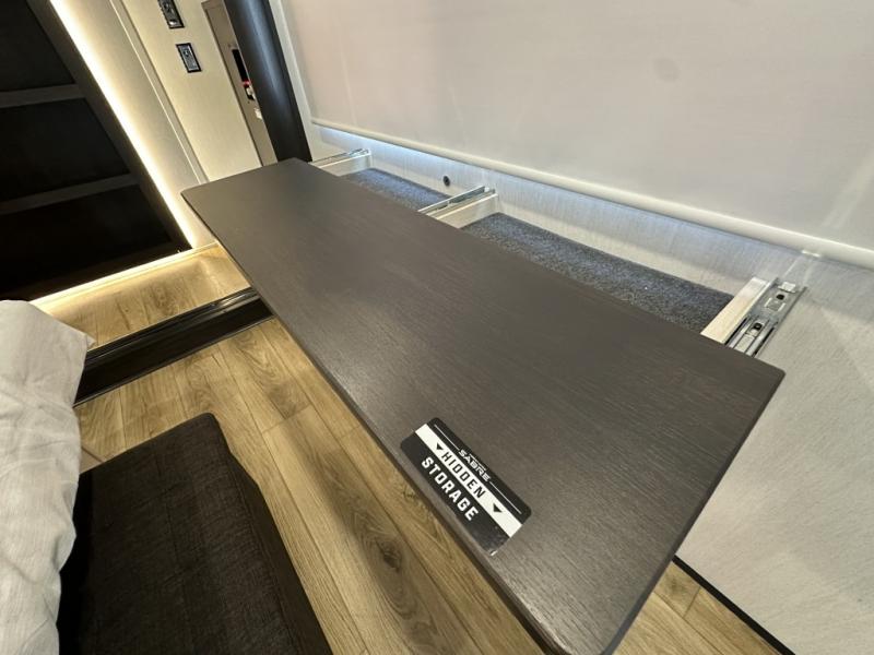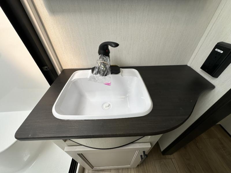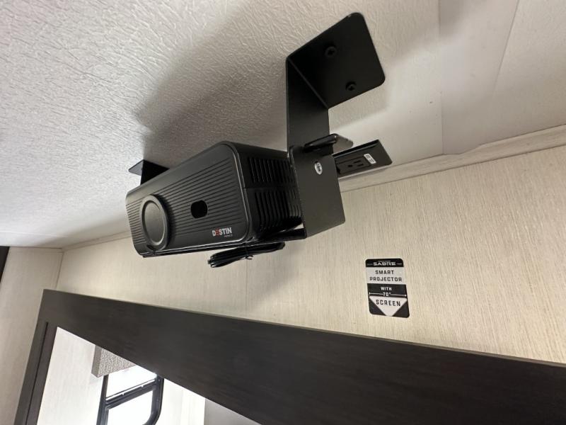 You will experience luxurious camping trips at an affordable price with any one of these Forest River Sabre fifth wheels! These models are durable and ready to travel anytime of the year thanks to features like the high-gloss gel-coat front cap with LED lighting, the PVC roof membrane, and the forced air underbelly with enclosed gate valves. The electric auto-leveling system makes setting up easy and safe, and the adjustable power awning with LED lighting will create an inviting outdoor living space. Each model includes a universal docking station which includes a black tank flush and an outside shower, and adjustable stable steps for you to enter and exit the unit safely. Inside, you will love the design of the ambient accent lighting in the living area, the real wood lumbercore cabinetry, and the linoleum flooring!