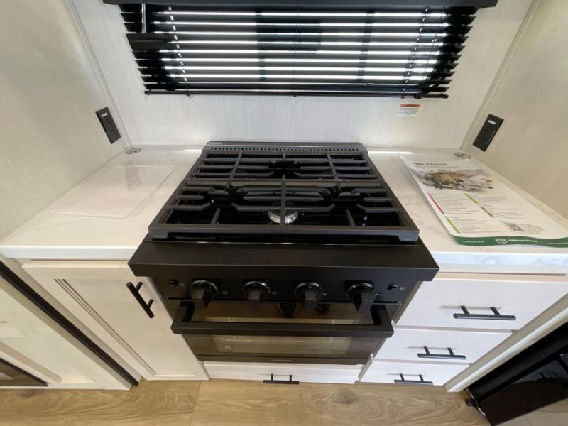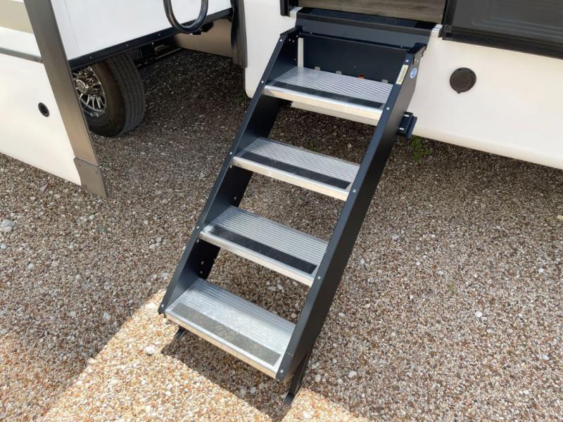 You will experience luxurious camping trips at an affordable price with any one of these Forest River Sabre fifth wheels! These models are durable and ready to travel anytime of the year thanks to features like the high-gloss gel-coat front cap with LED lighting, the PVC roof membrane, and the forced air underbelly with enclosed gate valves. The electric auto-leveling system makes setting up easy and safe, and the adjustable power awning with LED lighting will create an inviting outdoor living space. Each model includes a universal docking station which includes a black tank flush and an outside shower, and adjustable stable steps for you to enter and exit the unit safely. Inside, you will love the design of the ambient accent lighting in the living area, the real wood lumbercore cabinetry, and the linoleum flooring!