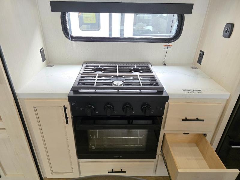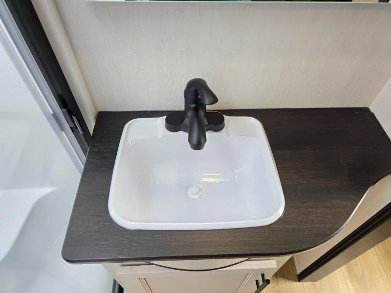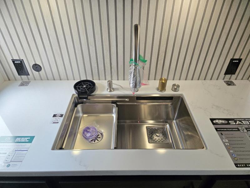 You will experience luxurious camping trips at an affordable price with any one of these Forest River Sabre fifth wheels! These models are durable and ready to travel anytime of the year thanks to features like the high-gloss gel-coat front cap with LED lighting, the PVC roof membrane, and the forced air underbelly with enclosed gate valves. The electric auto-leveling system makes setting up easy and safe, and the adjustable power awning with LED lighting will create an inviting outdoor living space. Each model includes a universal docking station which includes a black tank flush and an outside shower, and adjustable stable steps for you to enter and exit the unit safely. Inside, you will love the design of the ambient accent lighting in the living area, the real wood lumbercore cabinetry, and the linoleum flooring!