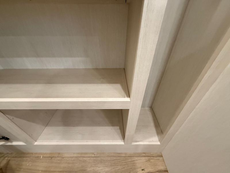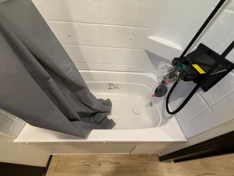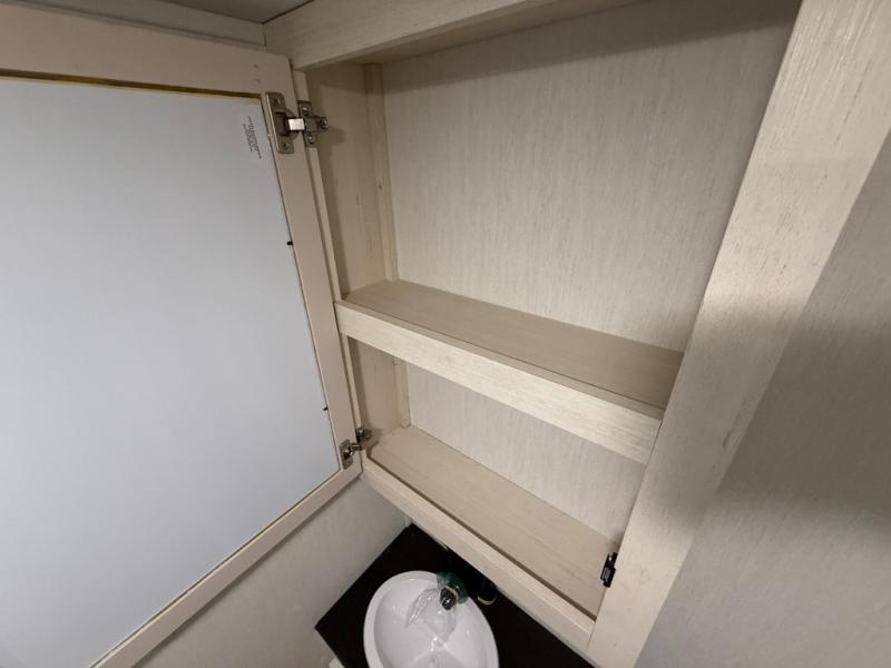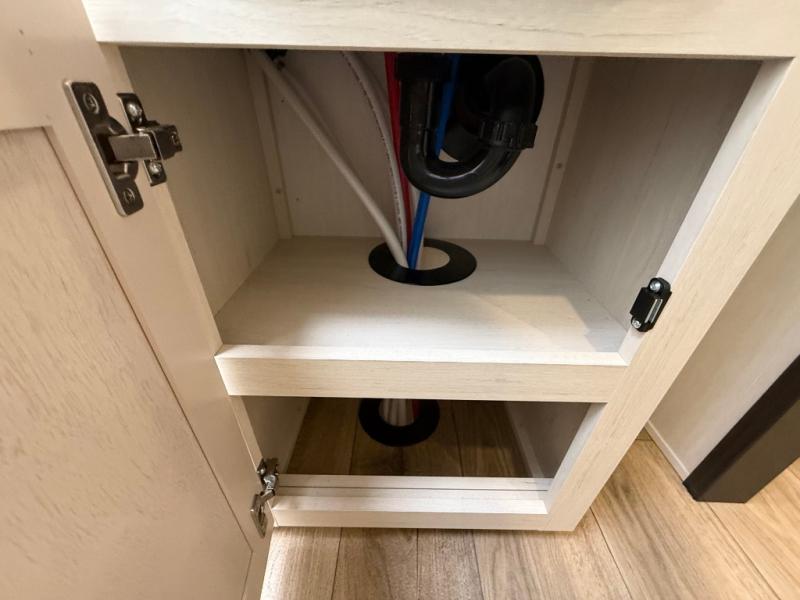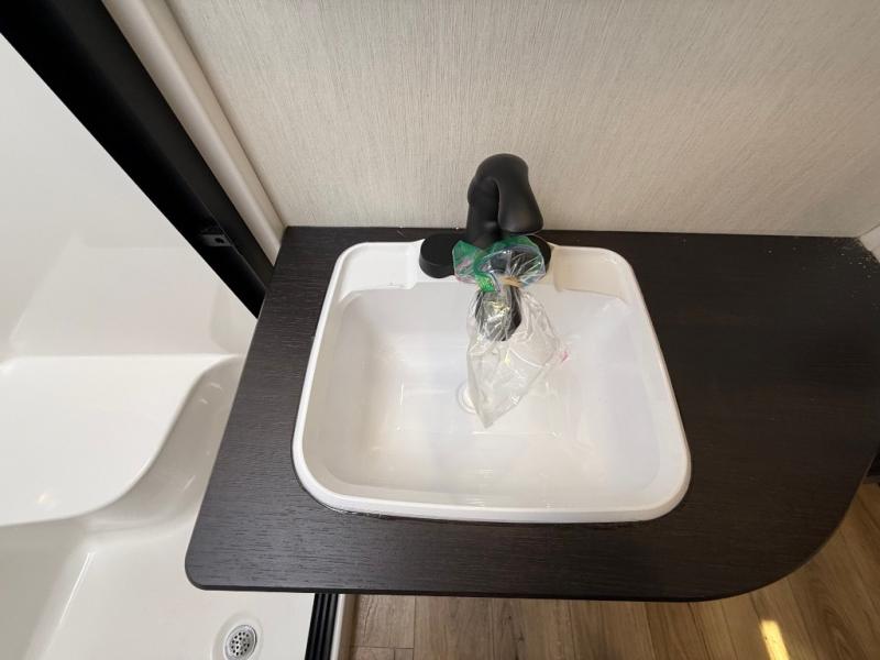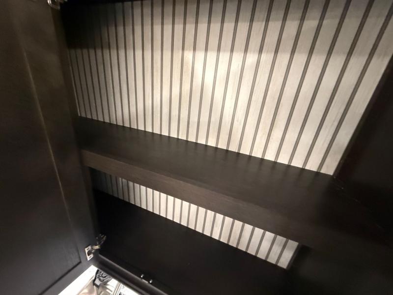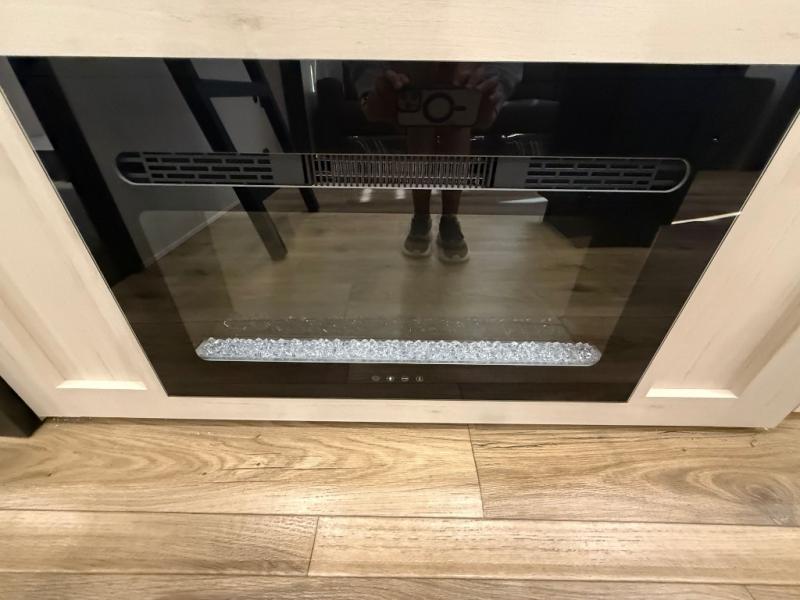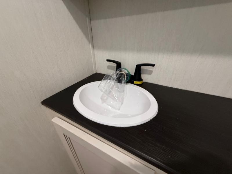 Are you looking for a fifth wheel where you can bring along your neighbor friends? You can do just that since there are two bedrooms in this unit, one of which includes a master bath with its own exterior entry door! The front bedroom is right next to the second full bath for convenience, and includes a camper king bed slide, a dresser, and front wardrobe. The rear master bedroom has a queen bed slide out across from a second slide for more floor space, and there is a loft above this room for more sleeping or storage space. Everyone can meet in the middle kitchen and living room since there are recliners, a ceiling fan, and kitchen island with four chairs. There is also storage below the island for kitchen necessities, and the hidden pantry behind the TV will be perfect for snacks, board games and more!