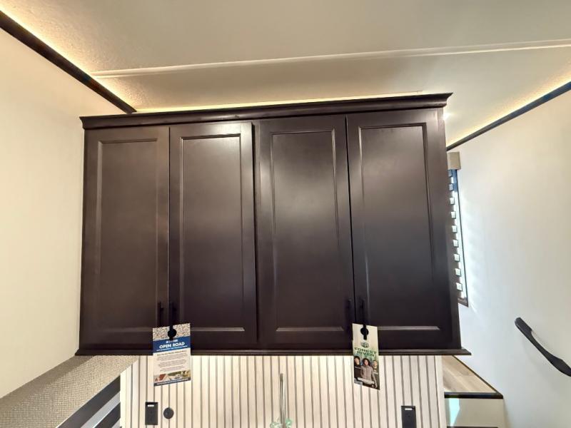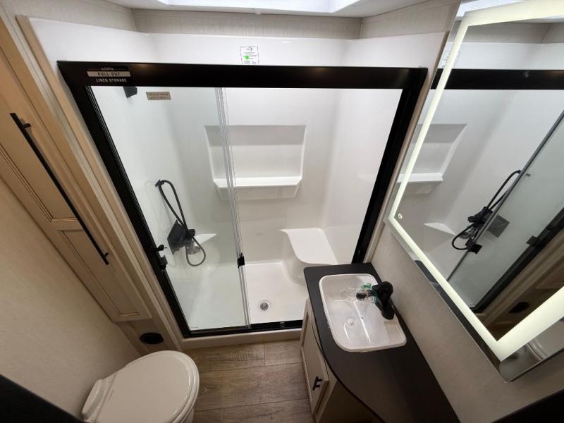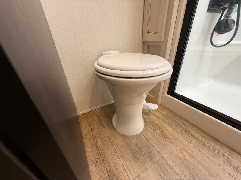 You will experience luxurious camping trips at an affordable price with any one of these Forest River Sabre fifth wheels! These models are durable and ready to travel anytime of the year thanks to features like the high-gloss gel-coat front cap with LED lighting, the PVC roof membrane, and the forced air underbelly with enclosed gate valves. The electric auto-leveling system makes setting up easy and safe, and the adjustable power awning with LED lighting will create an inviting outdoor living space. Each model includes a universal docking station which includes a black tank flush and an outside shower, and adjustable stable steps for you to enter and exit the unit safely. Inside, you will love the design of the ambient accent lighting in the living area, the real wood lumbercore cabinetry, and the linoleum flooring!