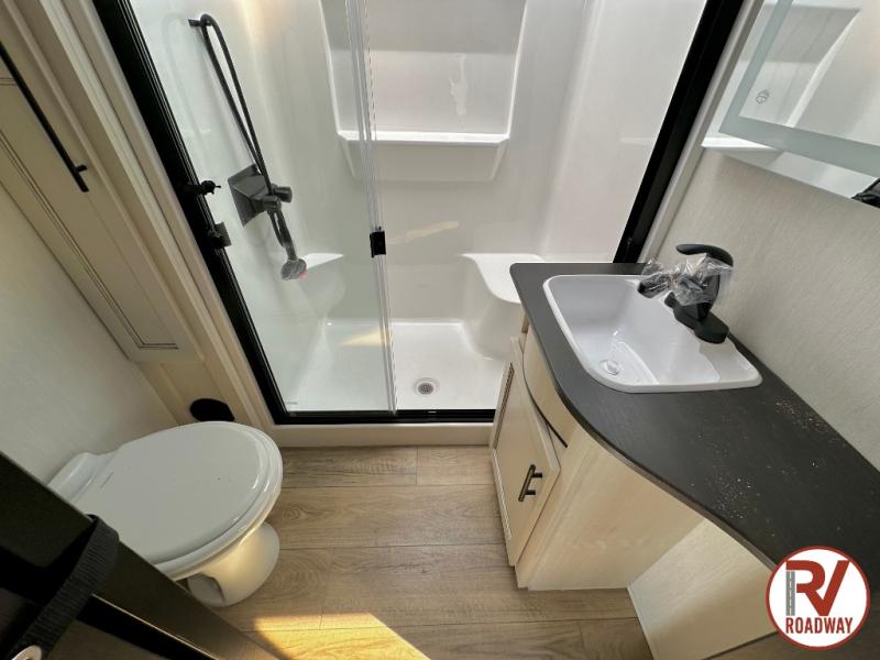 You will experience luxurious camping trips at an affordable price with any one of these Forest River Sabre fifth wheels! These models are durable and ready to travel anytime of the year thanks to features like the high-gloss gel-coat front cap with LED lighting, the PVC roof membrane, and the forced air underbelly with enclosed gate valves. The electric auto-leveling system makes setting up easy and safe, and the adjustable power awning with LED lighting will create an inviting outdoor living space. Each model includes a universal docking station which includes a black tank flush and an outside shower, and adjustable stable steps for you to enter and exit the unit safely. Inside, you will love the design of the ambient accent lighting in the living area, the real wood lumbercore cabinetry, and the linoleum flooring!