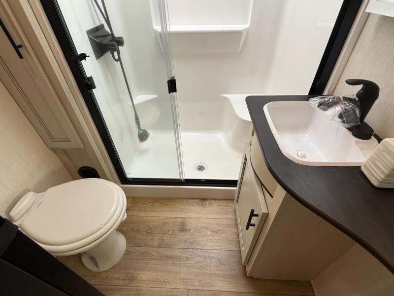 You will experience luxurious camping trips at an affordable price with any one of these Forest River Sabre fifth wheels! These models are durable and ready to travel anytime of the year thanks to features like the high-gloss gel-coat front cap with LED lighting, the PVC roof membrane, and the forced air underbelly with enclosed gate valves. The electric auto-leveling system makes setting up easy and safe, and the adjustable power awning with LED lighting will create an inviting outdoor living space. Each model includes a universal docking station which includes a black tank flush and an outside shower, and adjustable stable steps for you to enter and exit the unit safely. Inside, you will love the design of the ambient accent lighting in the living area, the real wood lumbercore cabinetry, and the linoleum flooring!