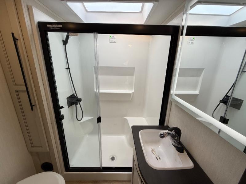 You will experience luxurious camping trips at an affordable price with any one of these Forest River Sabre fifth wheels! These models are durable and ready to travel anytime of the year thanks to features like the high-gloss gel-coat front cap with LED lighting, the PVC roof membrane, and the forced air underbelly with enclosed gate valves. The electric auto-leveling system makes setting up easy and safe, and the adjustable power awning with LED lighting will create an inviting outdoor living space. Each model includes a universal docking station which includes a black tank flush and an outside shower, and adjustable stable steps for you to enter and exit the unit safely. Inside, you will love the design of the ambient accent lighting in the living area, the real wood lumbercore cabinetry, and the linoleum flooring!