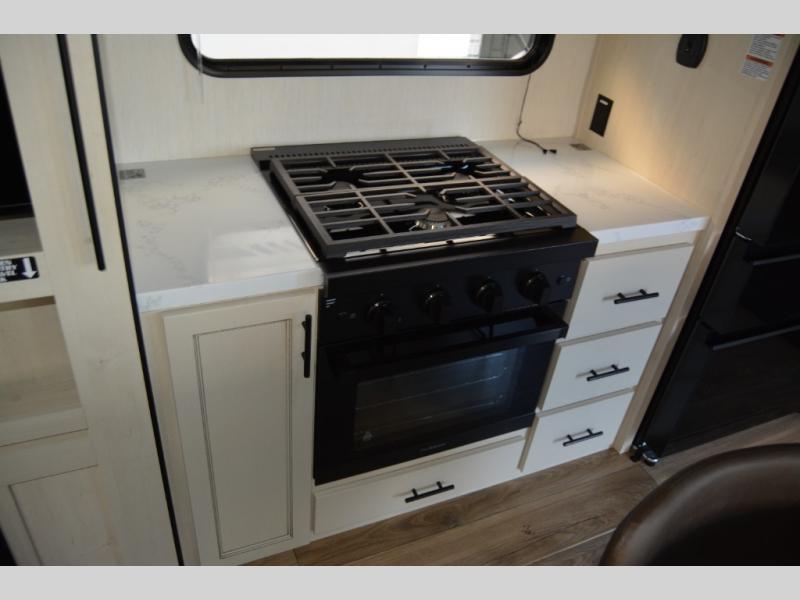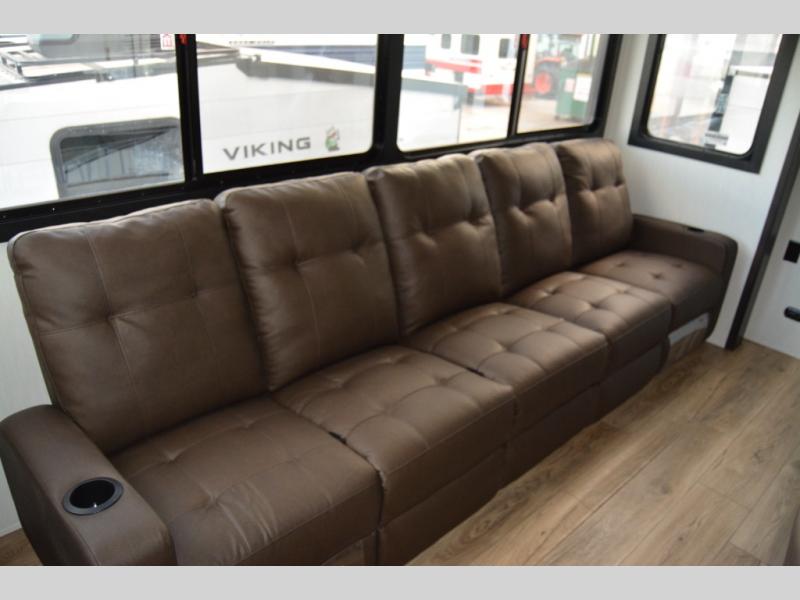 You will experience luxurious camping trips at an affordable price with any one of these Forest River Sabre fifth wheels! These models are durable and ready to travel anytime of the year thanks to features like the high-gloss gel-coat front cap with LED lighting, the PVC roof membrane, and the forced air underbelly with enclosed gate valves. The electric auto-leveling system makes setting up easy and safe, and the adjustable power awning with LED lighting will create an inviting outdoor living space. Each model includes a universal docking station which includes a black tank flush and an outside shower, and adjustable stable steps for you to enter and exit the unit safely. Inside, you will love the design of the ambient accent lighting in the living area, the real wood lumbercore cabinetry, and the linoleum flooring!