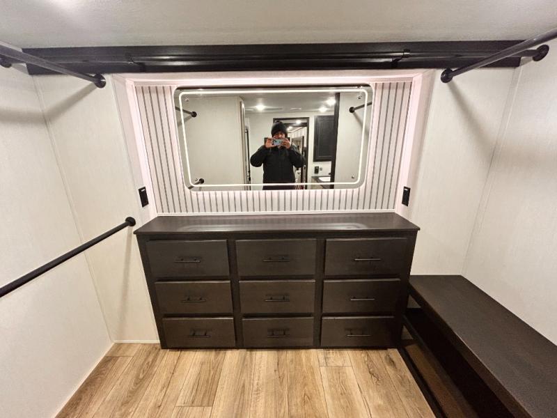 Rear Kitchen / Two Bathrooms / Front Walk In Closet / L-Sectional Sofa & Desk / King Bed / 200 W Solar System / 2 AC !!