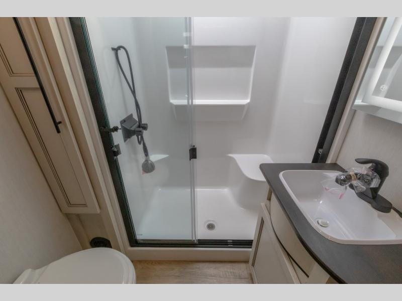 You will experience luxurious camping trips at an affordable price with any one of these Forest River Sabre fifth wheels! These models are durable and ready to travel anytime of the year thanks to features like the high-gloss gel-coat front cap with LED lighting, the PVC roof membrane, and the forced air underbelly with enclosed gate valves. The electric auto-leveling system makes setting up easy and safe, and the adjustable power awning with LED lighting will create an inviting outdoor living space. Each model includes a universal docking station which includes a black tank flush and an outside shower, and adjustable stable steps for you to enter and exit the unit safely. Inside, you will love the design of the ambient accent lighting in the living area, the real wood lumbercore cabinetry, and the linoleum flooring!