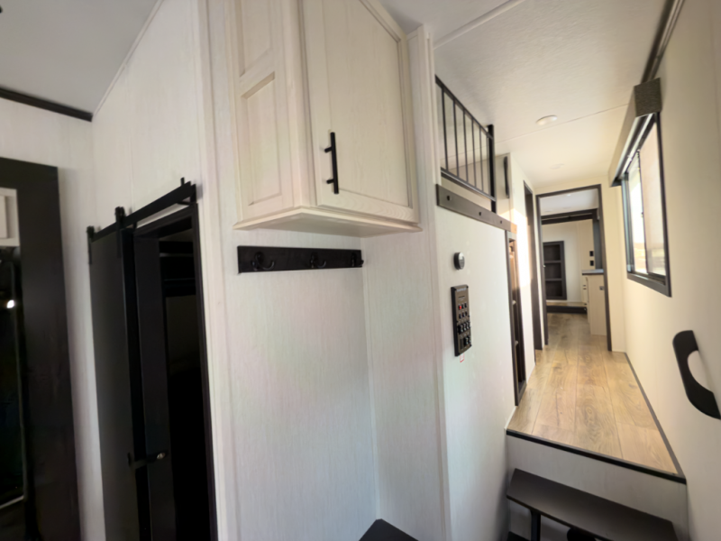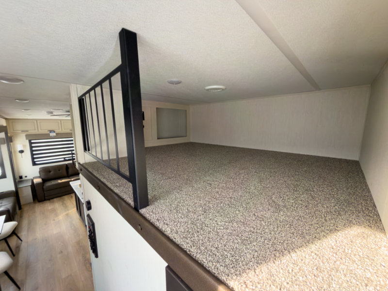 - Living Space: Front living room with elevated seating and entertainment area