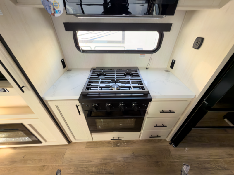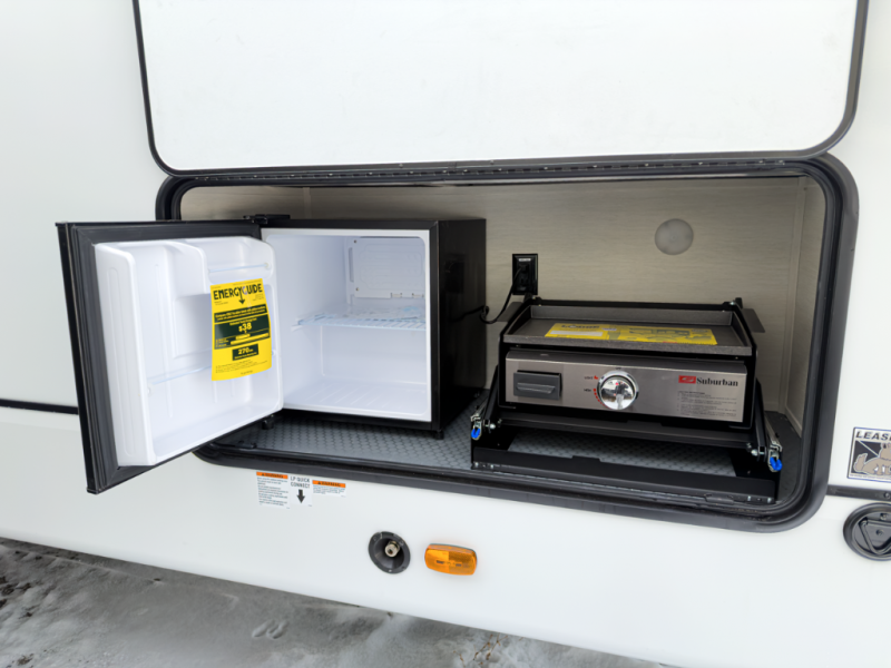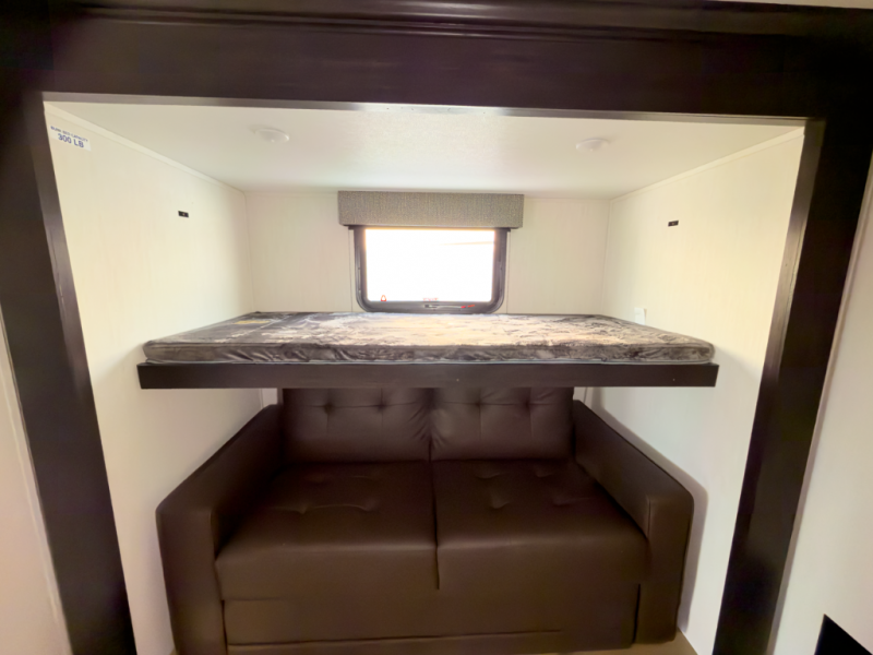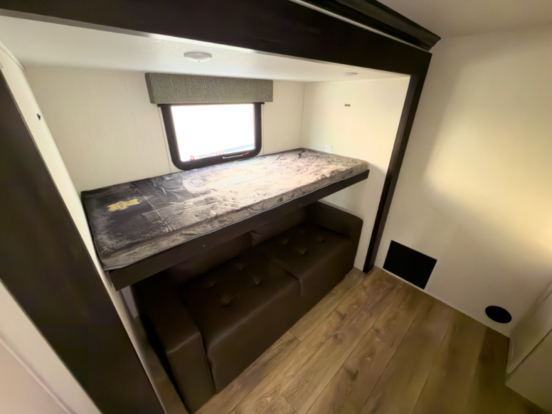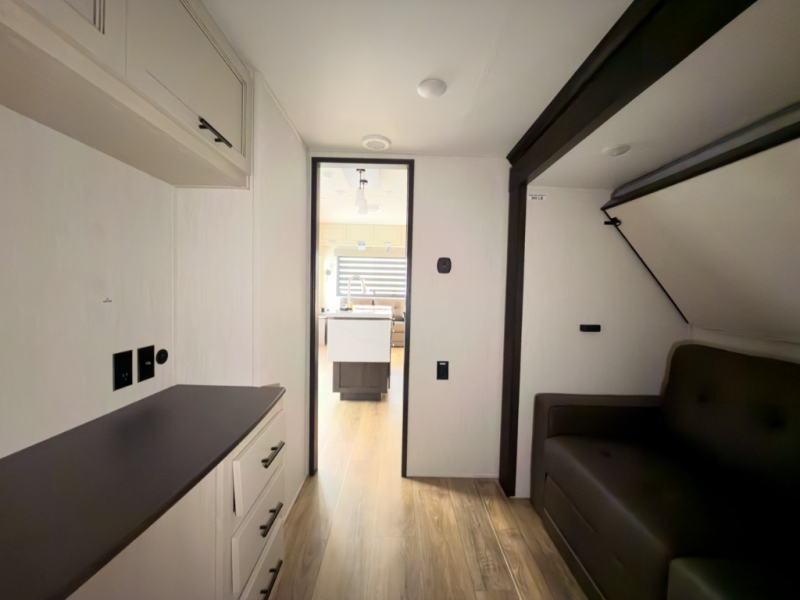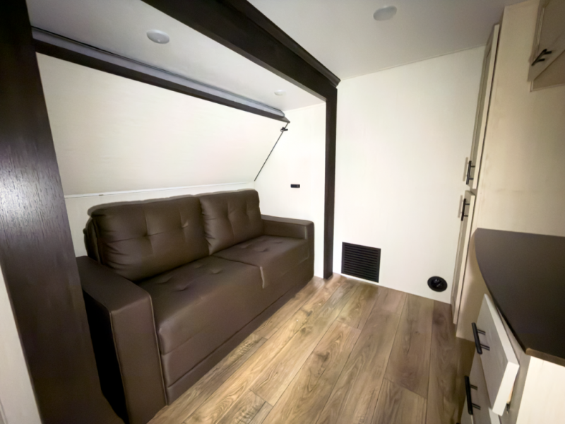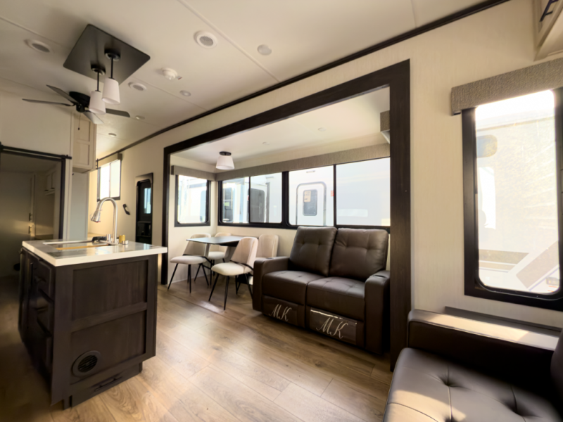 Front-living comfort with residential space for extended stays and seasonal camping.