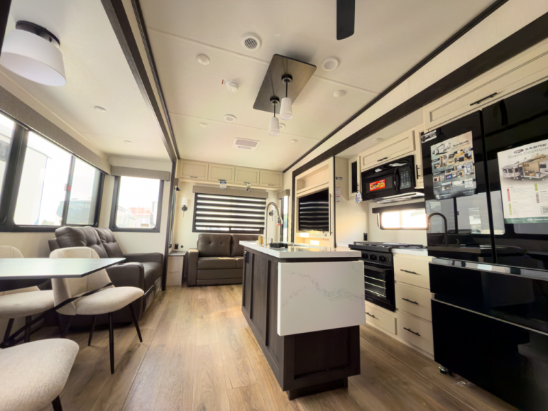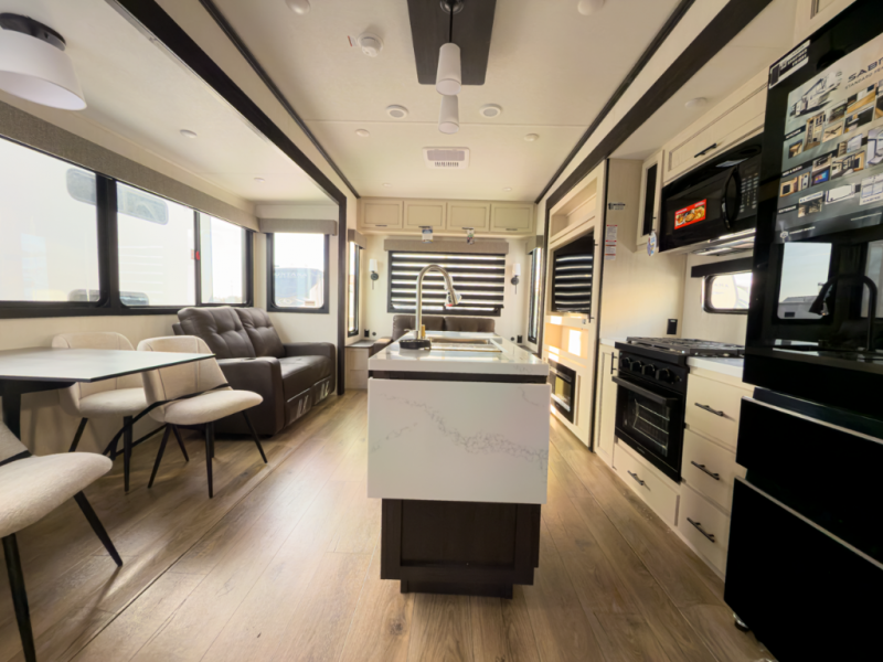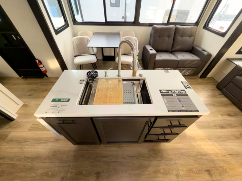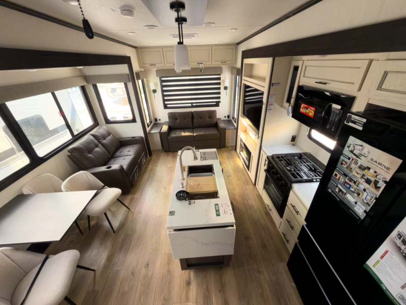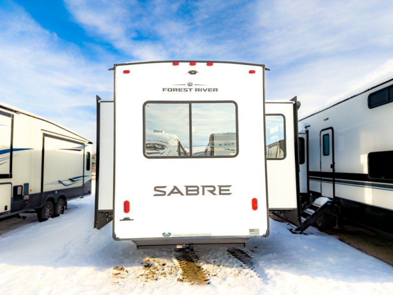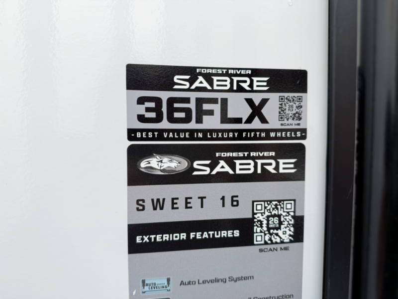 Interested in the 2026 Forest River Sabre 36FLX? Call 517-669-2755 or 586-446-6000, or visit our DeWitt or Sterling Heights locations to see if this front-living fifth wheel fits your camping plans.
