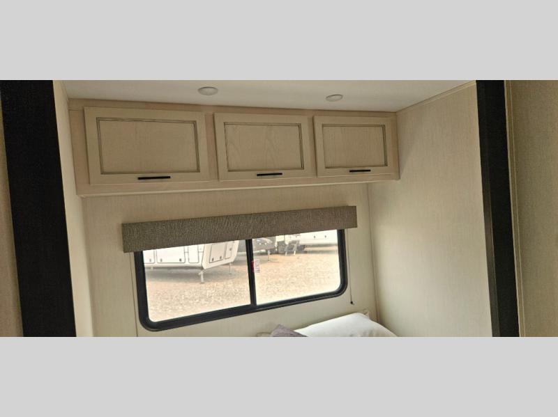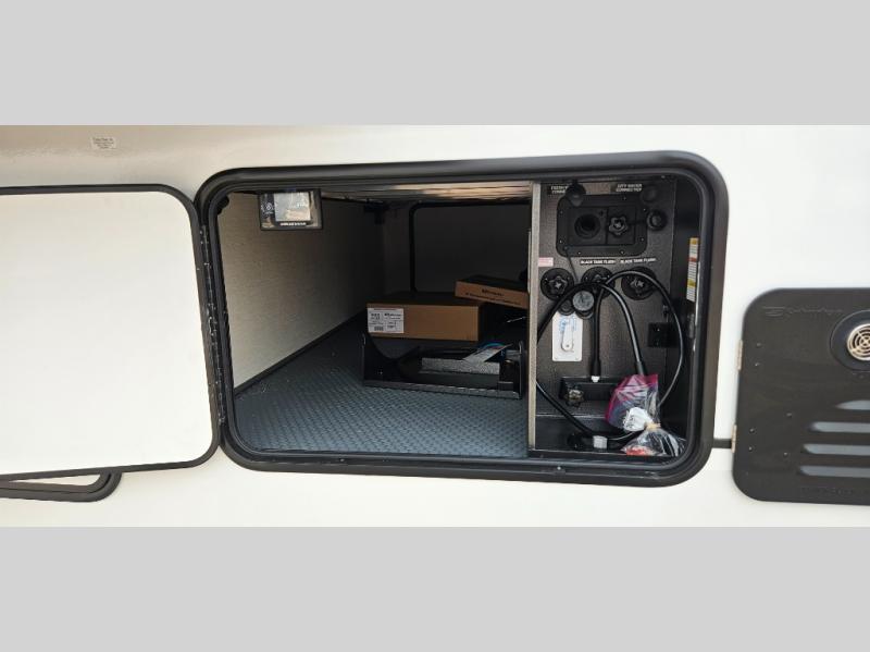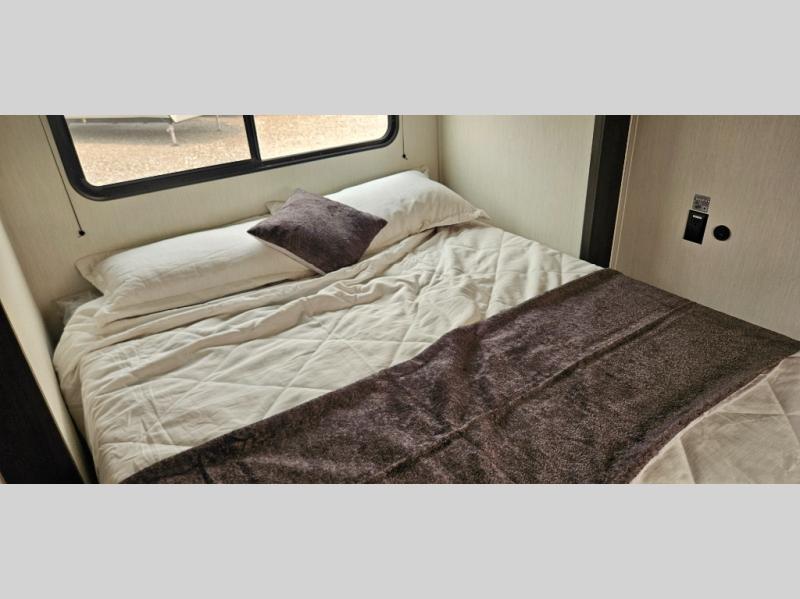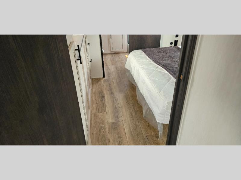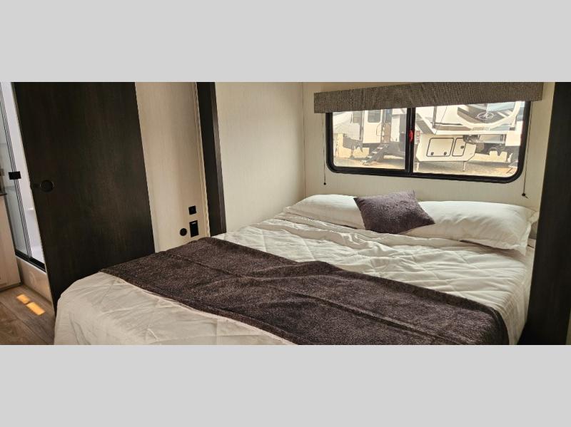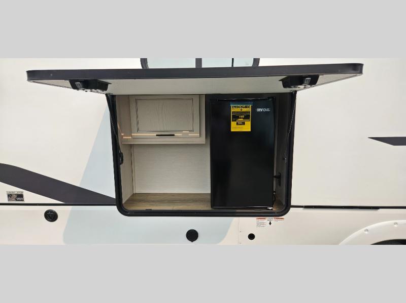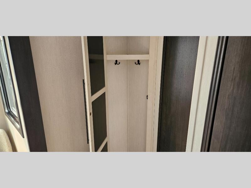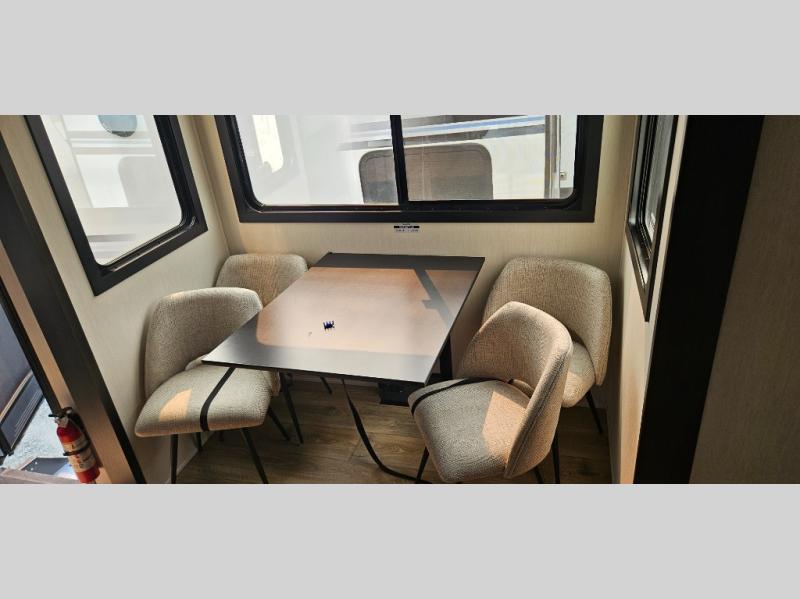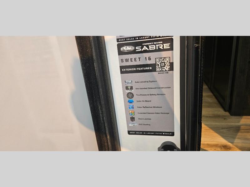 You will experience luxurious camping trips at an affordable price with any one of these Forest River Sabre fifth wheels! These models are durable and ready to travel anytime of the year thanks to features like the high-gloss gel-coat front cap with LED lighting, the PVC roof membrane, and the forced air underbelly with enclosed gate valves. The electric auto-leveling system makes setting up easy and safe, and the adjustable power awning with LED lighting will create an inviting outdoor living space. Each model includes a universal docking station which includes a black tank flush and an outside shower, and adjustable stable steps for you to enter and exit the unit safely. Inside, you will love the design of the ambient accent lighting in the living area, the real wood lumbercore cabinetry, and the linoleum flooring!