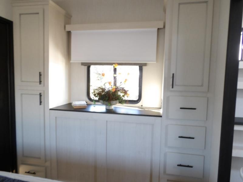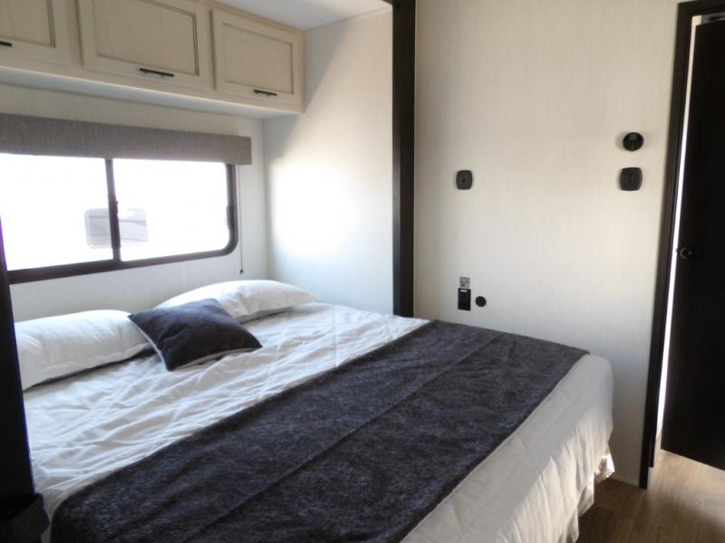 You will experience luxurious camping trips at an affordable price with any one of these Forest River Sabre fifth wheels! These models are durable and ready to travel anytime of the year thanks to features like the high-gloss gel-coat front cap with LED lighting, the PVC roof membrane, and the forced air underbelly with enclosed gate valves. The electric auto-leveling system makes setting up easy and safe, and the adjustable power awning with LED lighting will create an inviting outdoor living space. Each model includes a universal docking station which includes a black tank flush and an outside shower, and adjustable stable steps for you to enter and exit the unit safely. Inside, you will love the design of the ambient accent lighting in the living area, the real wood lumbercore cabinetry, and the linoleum flooring!