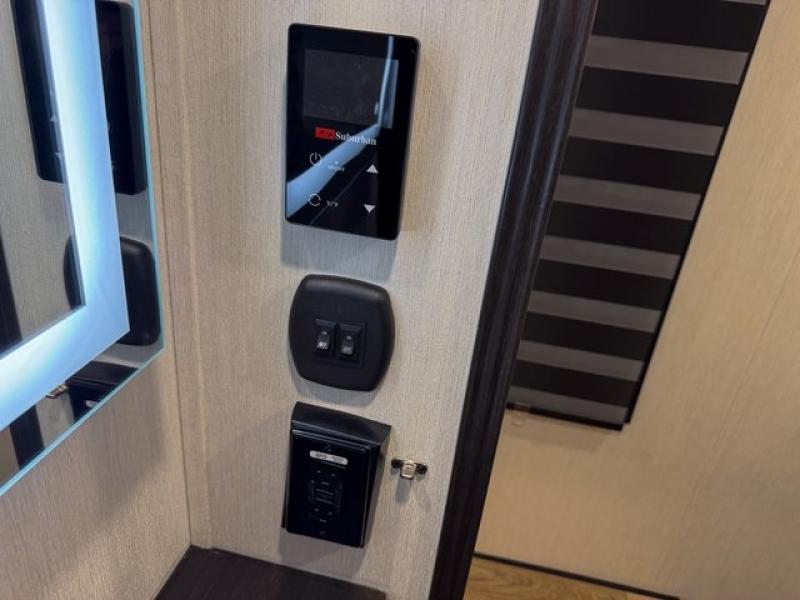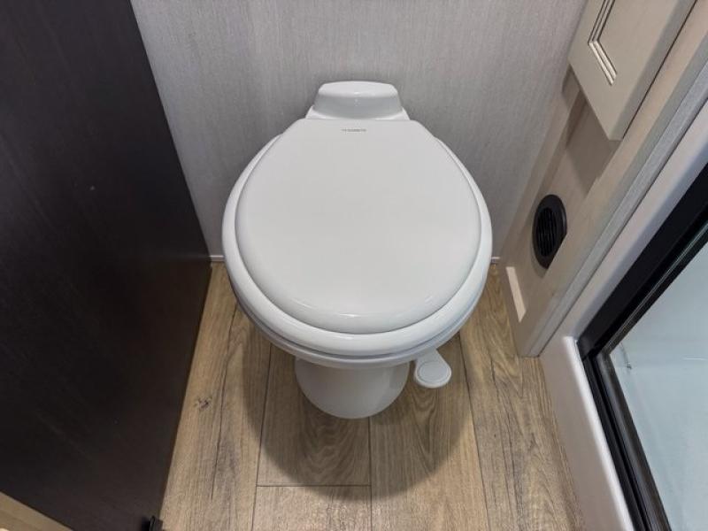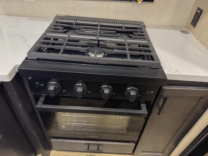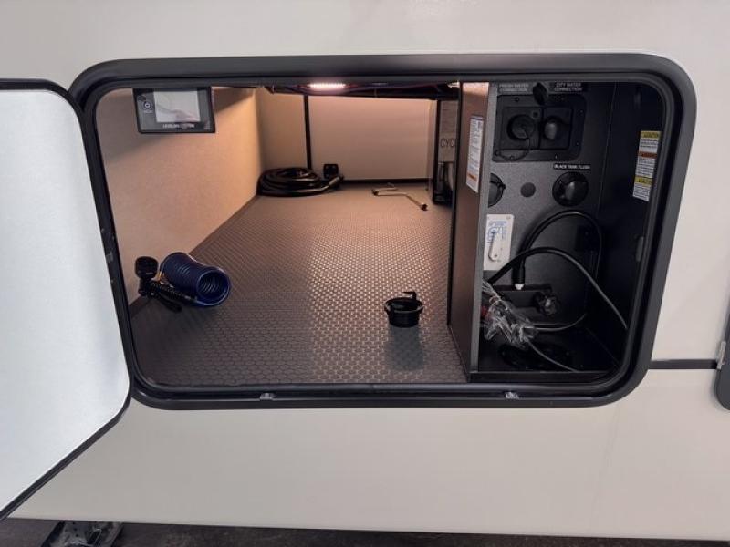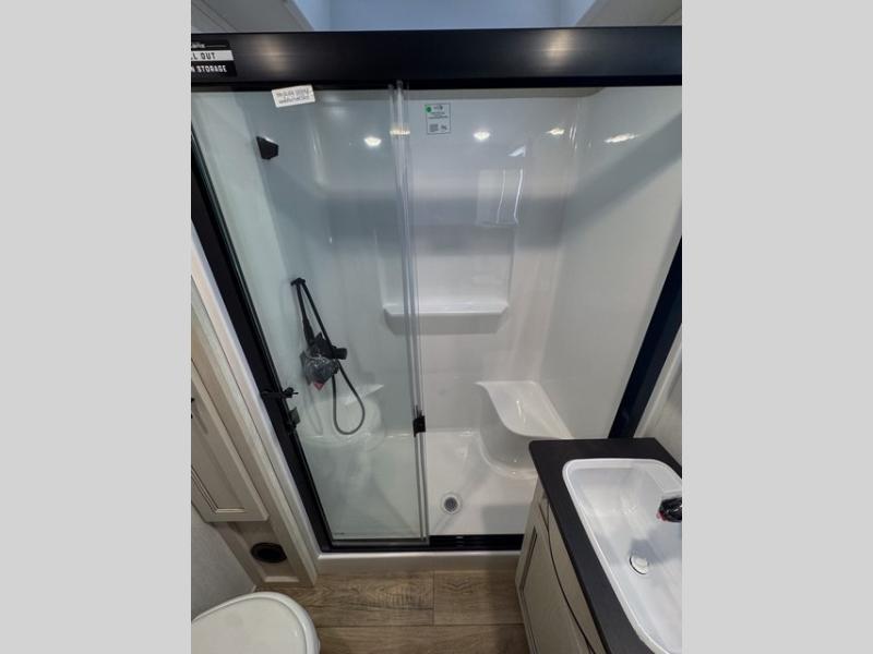 You will experience luxurious camping trips at an affordable price with any one of these Forest River Sabre fifth wheels! These models are durable and ready to travel anytime of the year thanks to features like the high-gloss gel-coat front cap with LED lighting, the PVC roof membrane, and the forced air underbelly with enclosed gate valves. The electric auto-leveling system makes setting up easy and safe, and the adjustable power awning with LED lighting will create an inviting outdoor living space. Each model includes a universal docking station which includes a black tank flush and an outside shower, and adjustable stable steps for you to enter and exit the unit safely. Inside, you will love the design of the ambient accent lighting in the living area, the real wood lumbercore cabinetry, and the linoleum flooring!