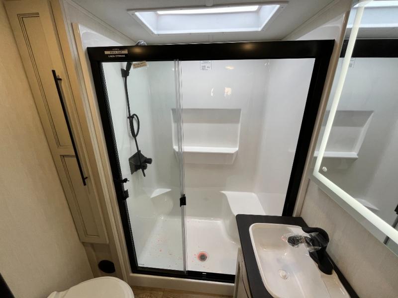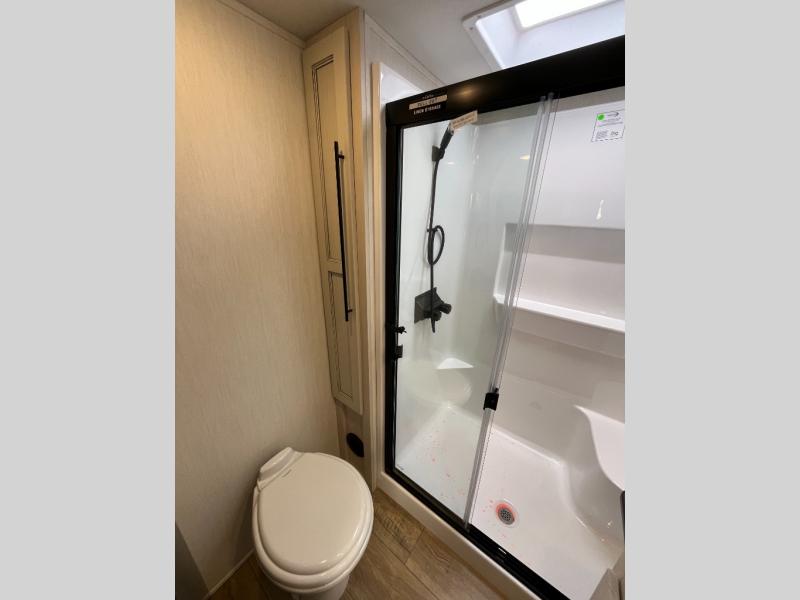 You will experience luxurious camping trips at an affordable price with any one of these Forest River Cherokee Sabre fifth wheels! These models are durable and ready to travel anytime of the year thanks to features like the high-gloss gel-coat front cap with LED lighting, the PVC roof membrane, and the forced air underbelly with enclosed gate valves. The electric auto-leveling system makes setting up easy and safe, and the adjustable power awning with LED lighting will create an inviting outdoor living space. Each model includes a universal docking station which includes a black tank flush and an outside shower, and adjustable stable steps for you to enter and exit the unit safely. Inside, you will love the design of the ambient accent lighting in the living area, the real wood lumbercore cabinetry, and the linoleum flooring!