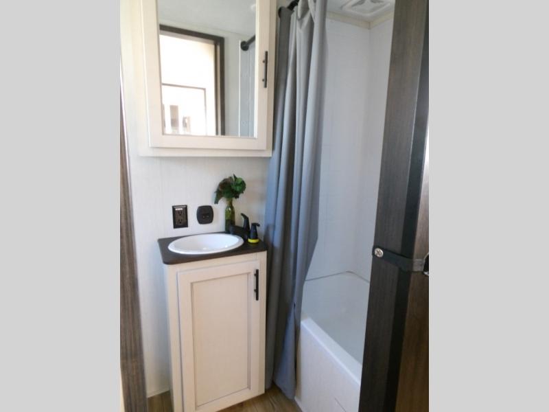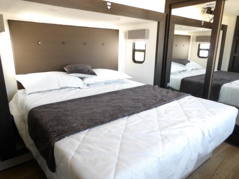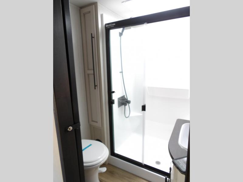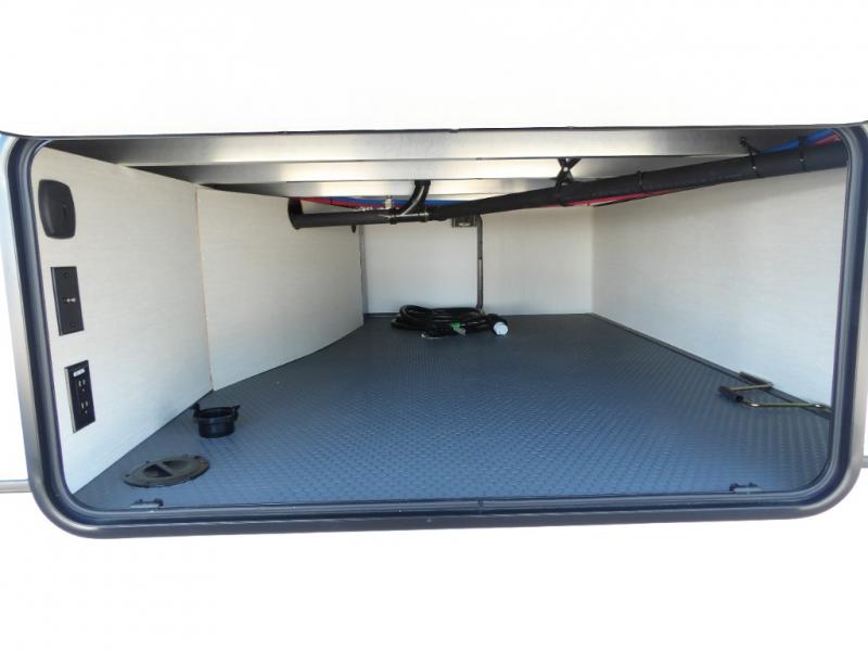 You will experience luxurious camping trips at an affordable price with any one of these Forest River Sabre fifth wheels! These models are durable and ready to travel anytime of the year thanks to features like the high-gloss gel-coat front cap with LED lighting, the PVC roof membrane, and the forced air underbelly with enclosed gate valves. The electric auto-leveling system makes setting up easy and safe, and the adjustable power awning with LED lighting will create an inviting outdoor living space. Each model includes a universal docking station which includes a black tank flush and an outside shower, and detachable and adjustable stable steps for you to enter and exit the unit safely. Inside, you will love the design of the ambient accent lighting in the living area, the real wood lumbercore cabinetry, and the linoleum flooring!