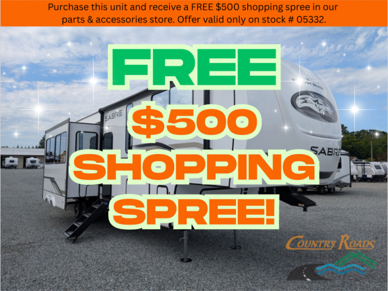 You will experience luxurious camping trips at an affordable price with any one of these Forest River Sabre fifth wheels! These models are durable and ready to travel anytime of the year thanks to features like the high-gloss gel-coat front cap with LED lighting, the PVC roof membrane, and the forced air underbelly with enclosed gate valves. The electric auto-leveling system makes setting up easy and safe, and the adjustable power awning with LED lighting will create an inviting outdoor living space. Each model includes a universal docking station which includes a black tank flush and an outside shower, and detachable and adjustable stable steps for you to enter and exit the unit safely. Inside, you will love the design of the ambient accent lighting in the living area, the real wood lumbercore cabinetry, and the linoleum flooring!