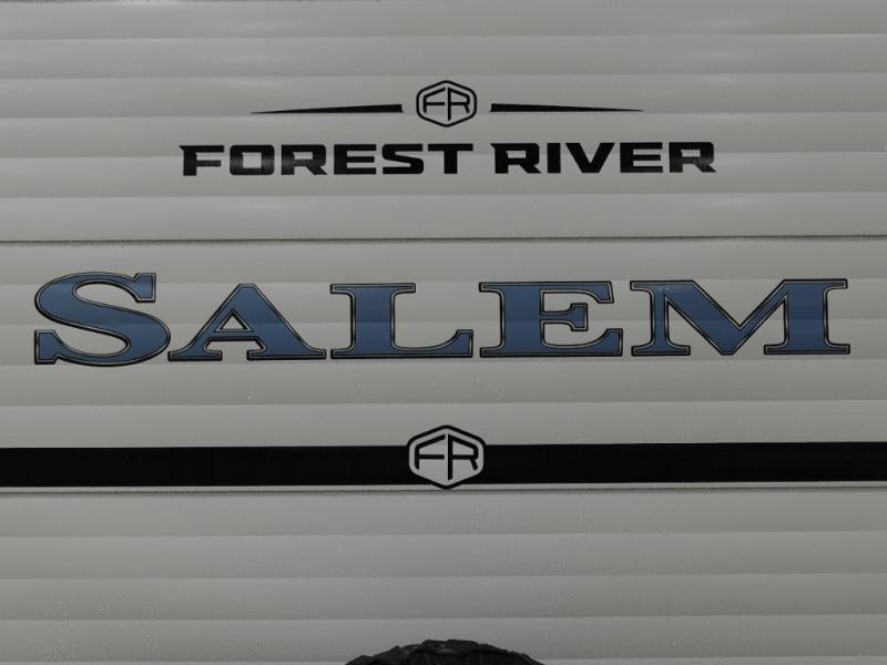The Salem travel trailers are packed with hassle-free camping amenities and there are a variety of floorplans to choose from. The heated and enclosed Accessibelly will help protect against the elements and debris during transport, and the exterior retro/metal redesign is sure to be eye-catching! There are stylish roller shades inside, along with updated backsplash, elegant curtain rods and curtains, plus many more interior comforts! Choose a Salem travel trailer today for quality and value!